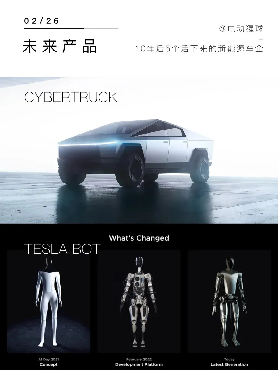 我先来:特斯拉 ·市售产品MODEL X/Y 座舱、电机、供应链、成本控制、自动驾驶代表着电动车最高水平 ·特斯拉已将自己定位为智能机器人公司 将推出极具未来感的皮卡车型 人形机器人提供了替代人工的可能,市场规模超过新能源车 ·纯视觉的自动驾驶技术全球独一档 配合DOJO计算器处理海量的数据 电池技术、专利行业领先 评论区说出你心中的五大车企