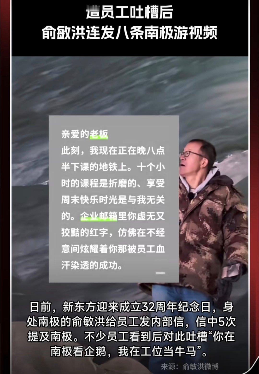 俞敏洪在南极给员工写信翻车,员工:本来加班就烦