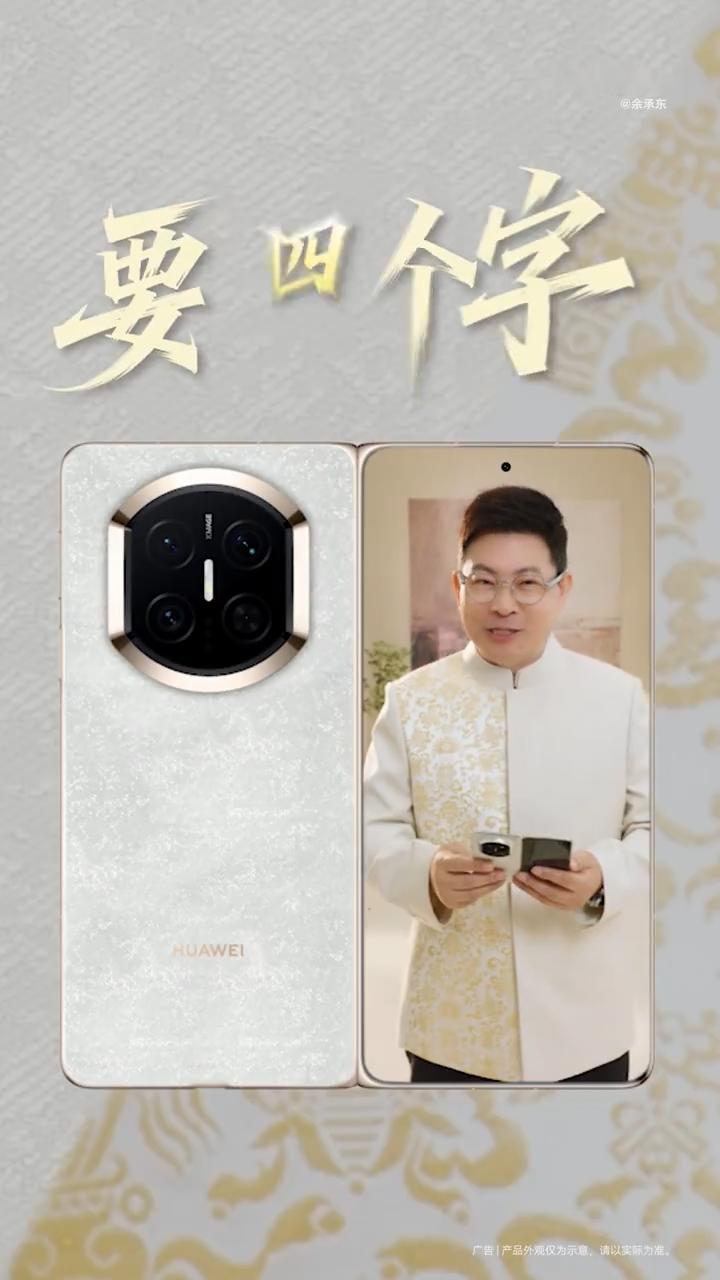 华为最新折叠旗舰 Mate X7 外观正式公布,余承东手中亮相的机型为全新「云锦