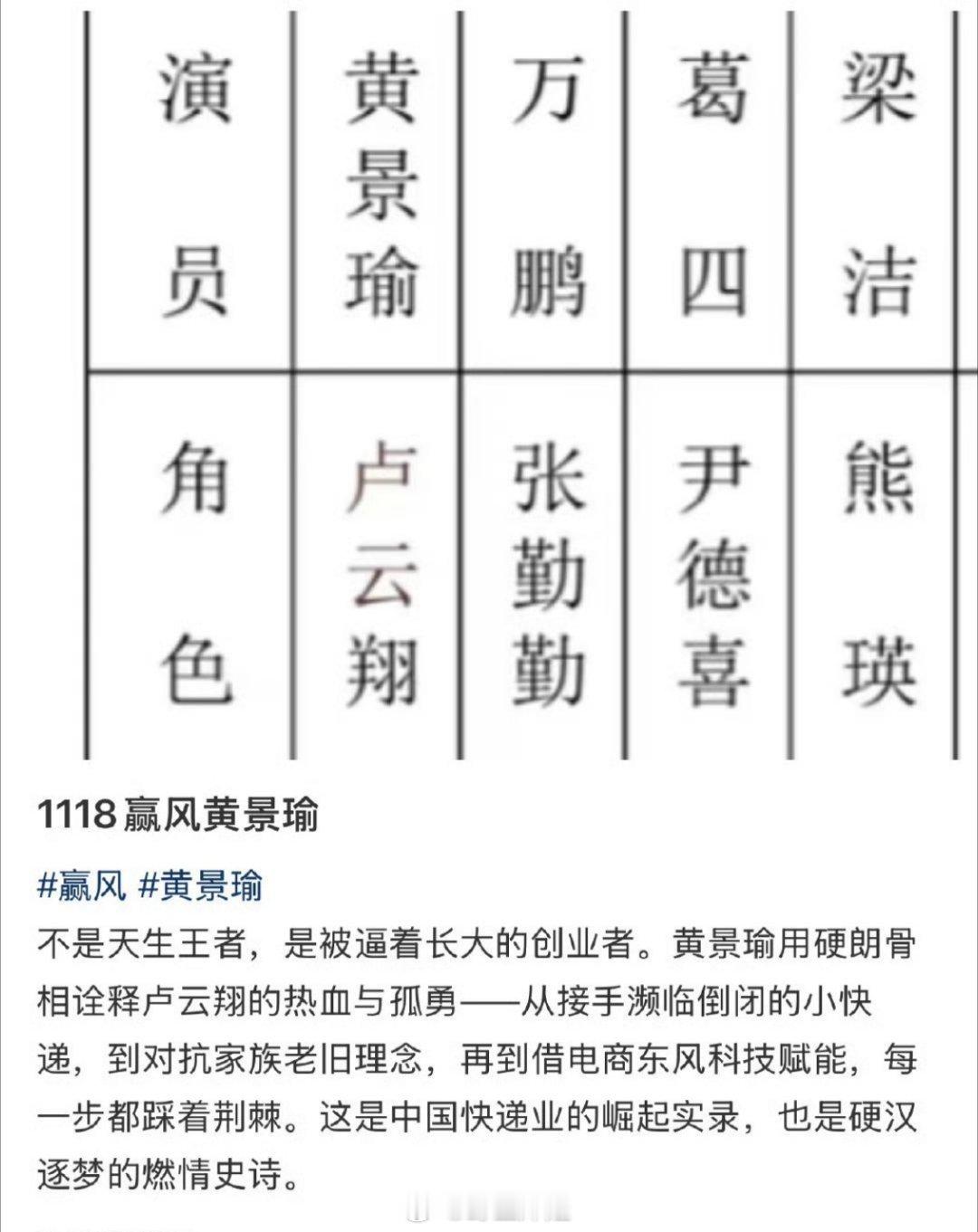 电视剧《赢风》开机,一番黄景瑜,二番万鹏,迟蓬三番