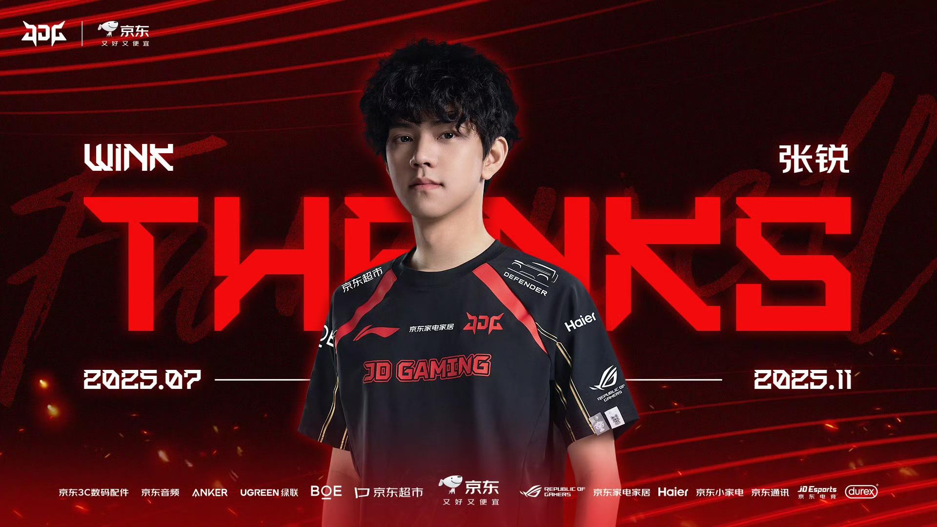 经选手与俱乐部双方友好协商,在充分尊重选手个人意愿的前提下,即日起JDG京东电子竞技俱乐部辅助选手张锐(ID:Wink)正式断开连接。