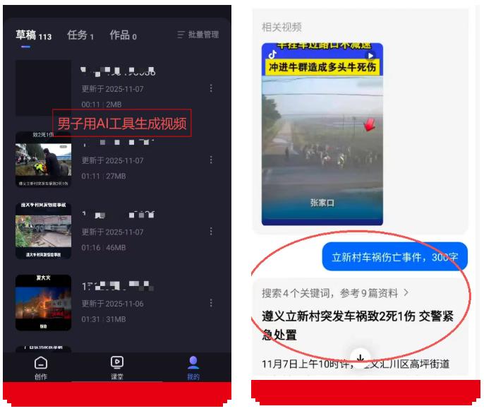 11月7日,杨某为博取关注,使用AI技术生成工具,在抖音平台连续发布两条内容不实的短视频,扰乱网络秩序,造成不良社会影响。