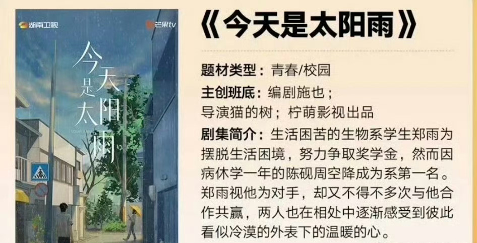 杨超越、董思成合作新剧《今天是太阳雨》开通官方抖