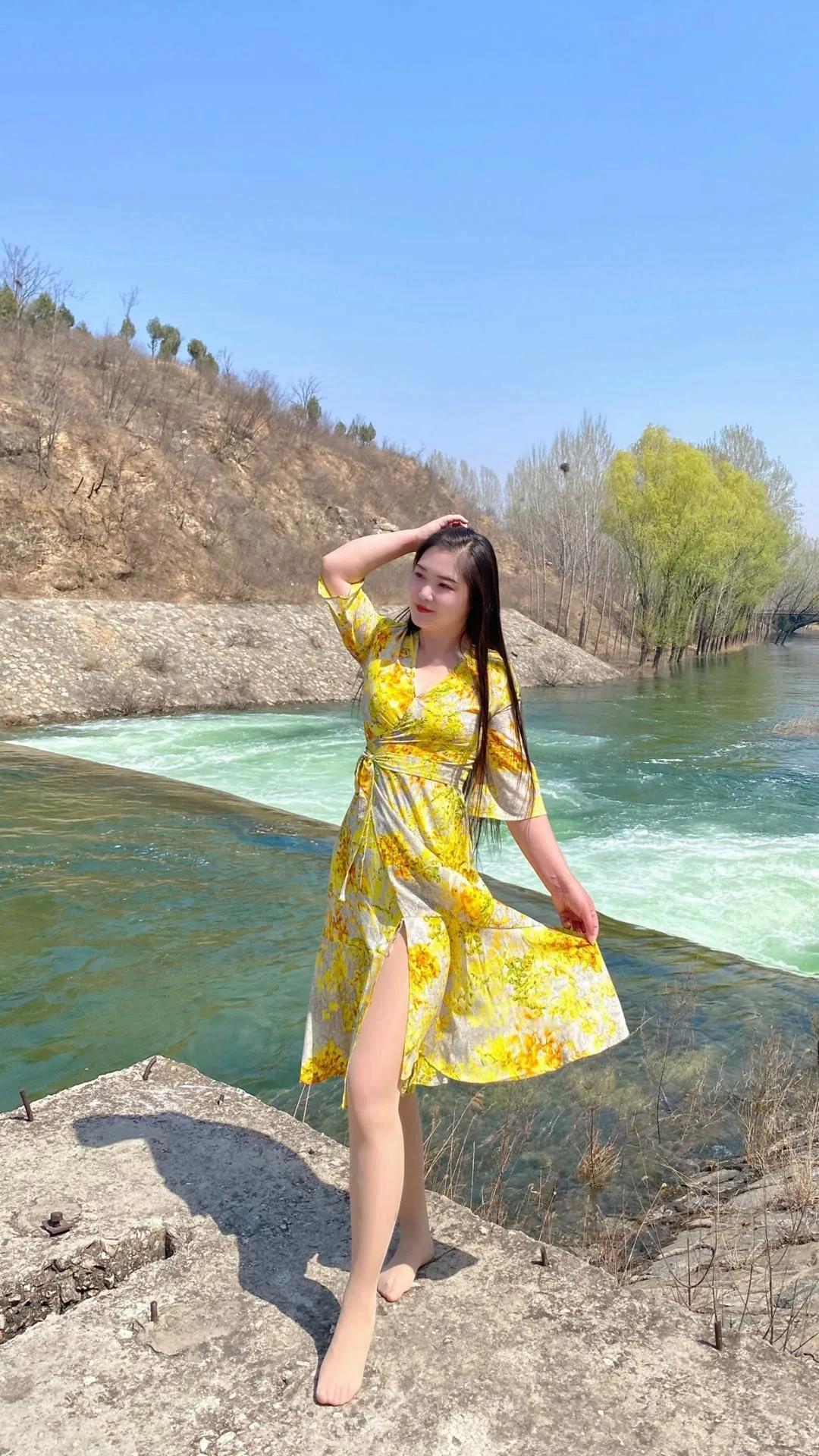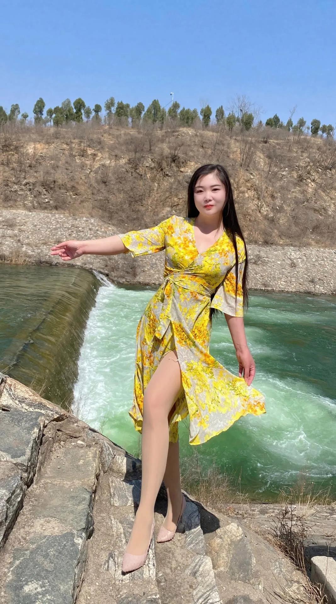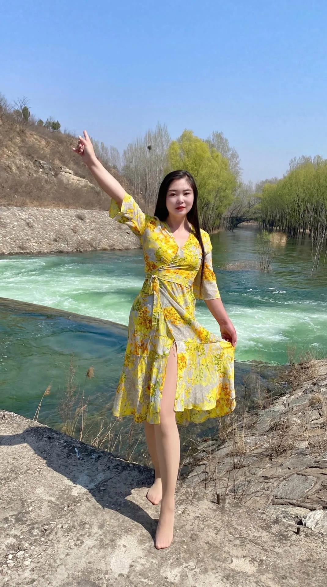 江西南昌,这位黄衣女子,已经得瑟不起来了!和同伴爬山,一会儿站在石上跳舞,一会儿