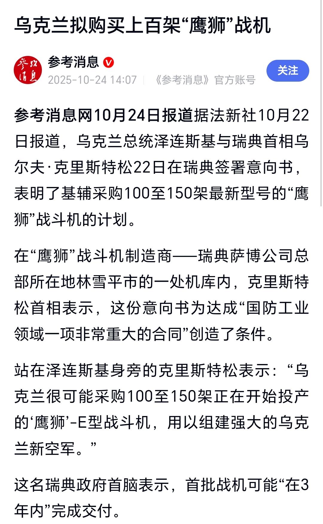 谁说乌克兰崩溃没钱了,这不是又挥舞着支票簿去法国买100架阵风了吗?前不久不是才在瑞典下单了150架鹰狮吗? 至于交货期嘛,反正现在和俄罗斯打仗是用不上了。 欧盟这些国家都这么支持乌克兰了,怎么就没有直接把自己现役的飞机直接给乌克兰啊?当年我们可是直接把现役装备给了已经顶不住了的小巴兄弟,这才是真正的朋友啊。 现在法国这么搞,明摆着就是坑乌克兰的钱嘛。 钱是现在赚到的,货是花十年时间交的。 资本家的敲骨吸髓具象化了。 点右上角关注我,我们一起去看这个魔幻的世界