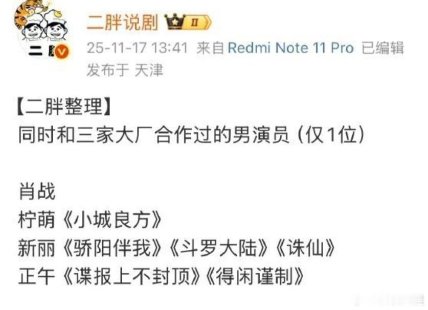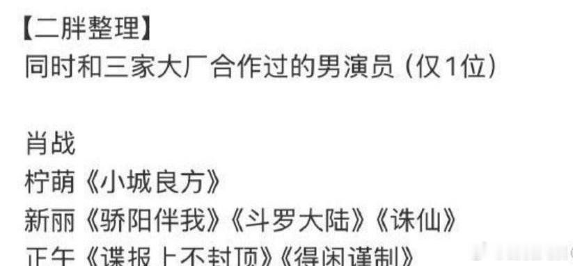 三大厂合作资源与扶车碰倒一排车辆的画面,共同塑造肖战在男演员中的独特定位,稀缺经历叠加让个人特质更显突出。