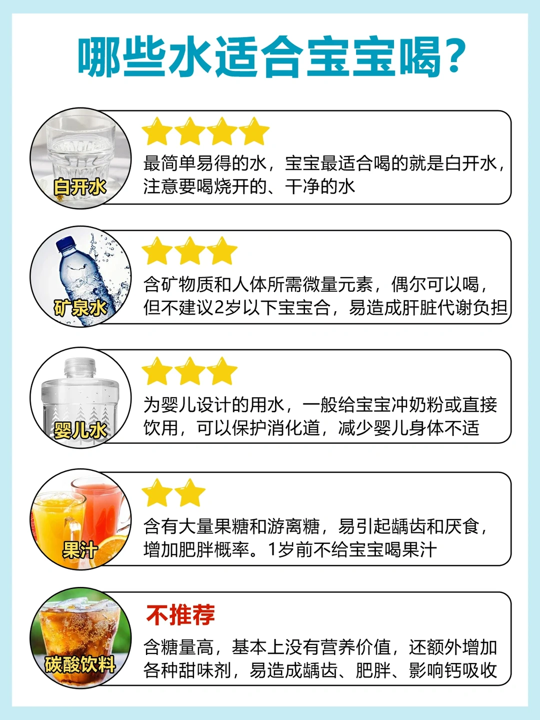 ⭕千万不要为了让宝宝学喝水,给果汁、可乐,易造成龋齿、肥胖、养成嗜甜的习惯