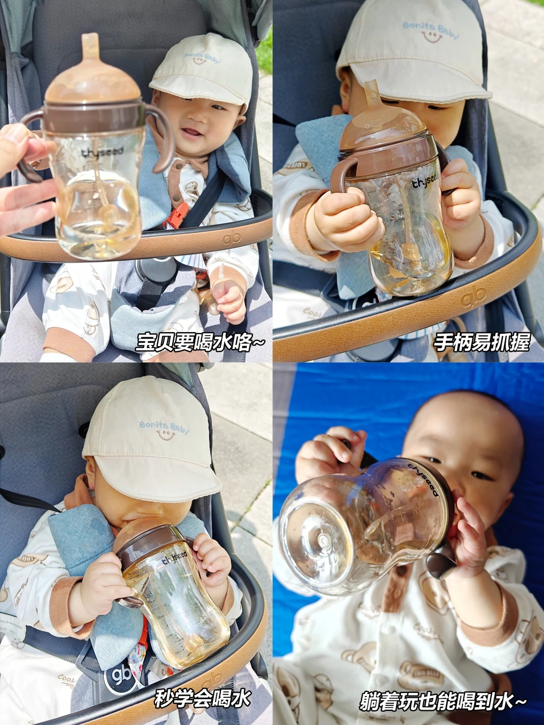 在直接大人一样的宽口碑之前,可以加个斜口杯,斜口杯可以看清水位,不用仰头也能喝水,防呛咳