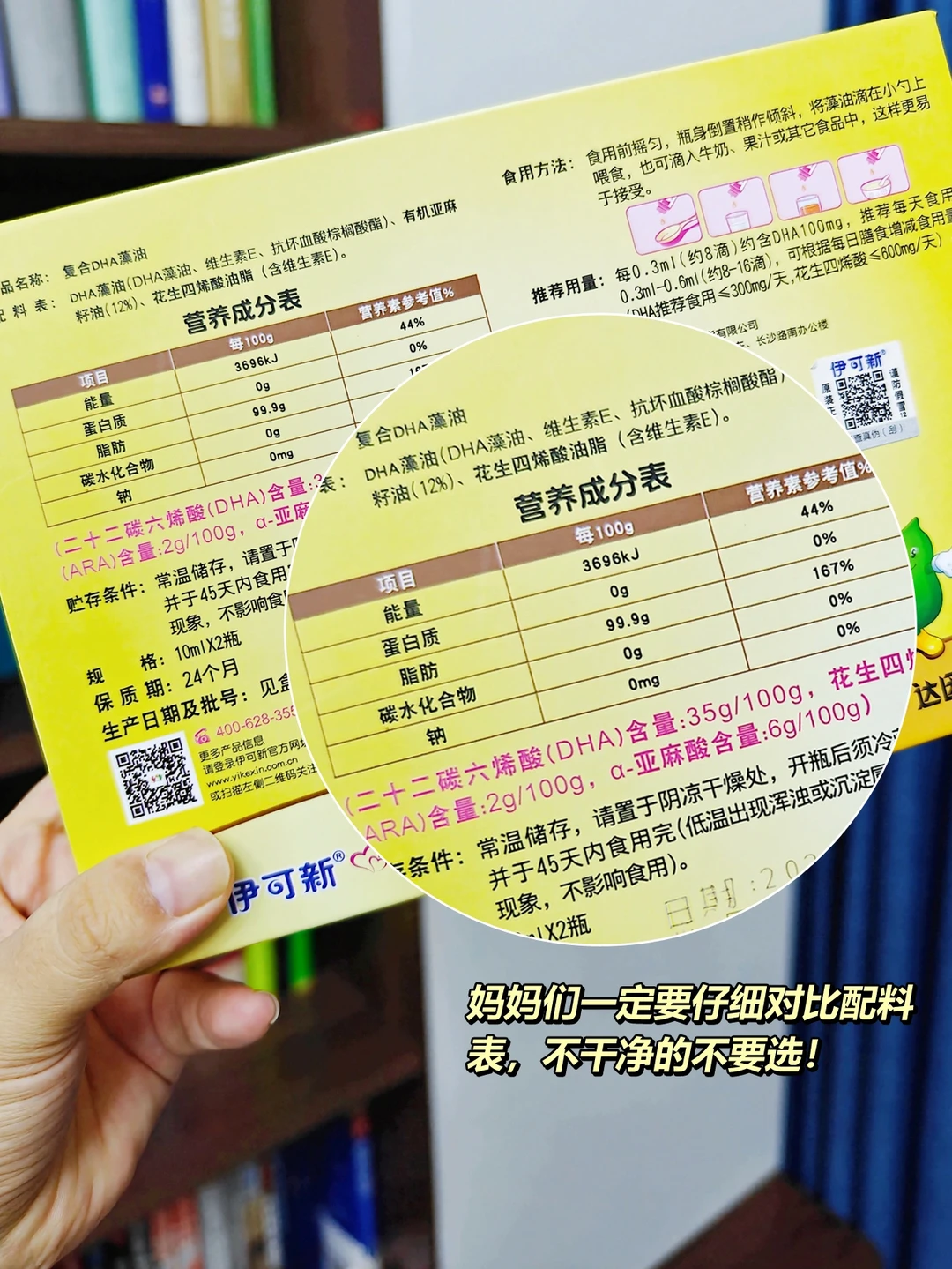 ✨伊可新是从深海优质微藻提取,DHA纯度高,每0.3毫升(只要8滴)就提供100mgDHA,市面上很多是0.5毫升才含100mg,伊可新DHA含量很优秀