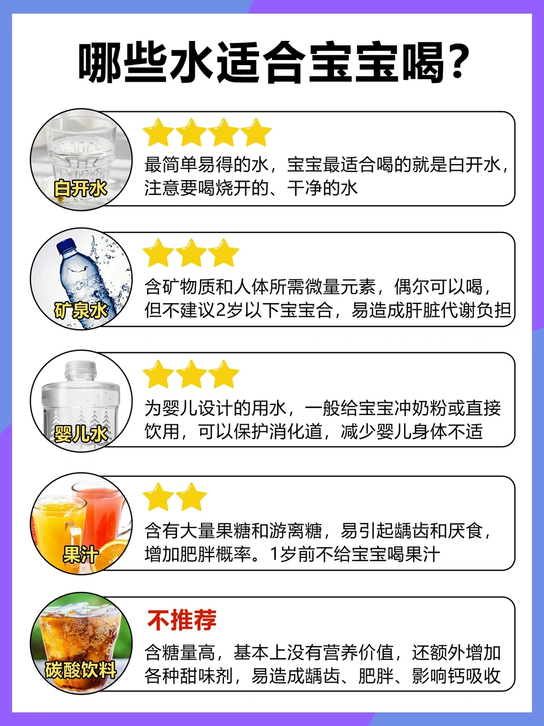 ⭕千万不要为了让宝宝学喝水,给果汁、可乐,易造成龋齿、肥胖、嗜甜