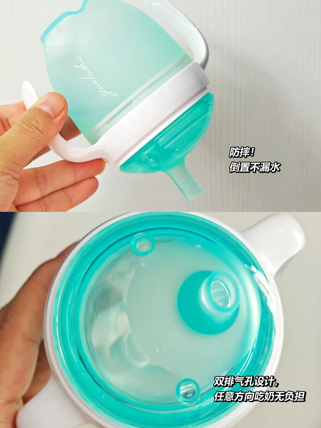 这个阶段还是要尽量训练宝宝用直饮型奶瓶,训练宝宝正确咬合,预防龋齿、地包天
