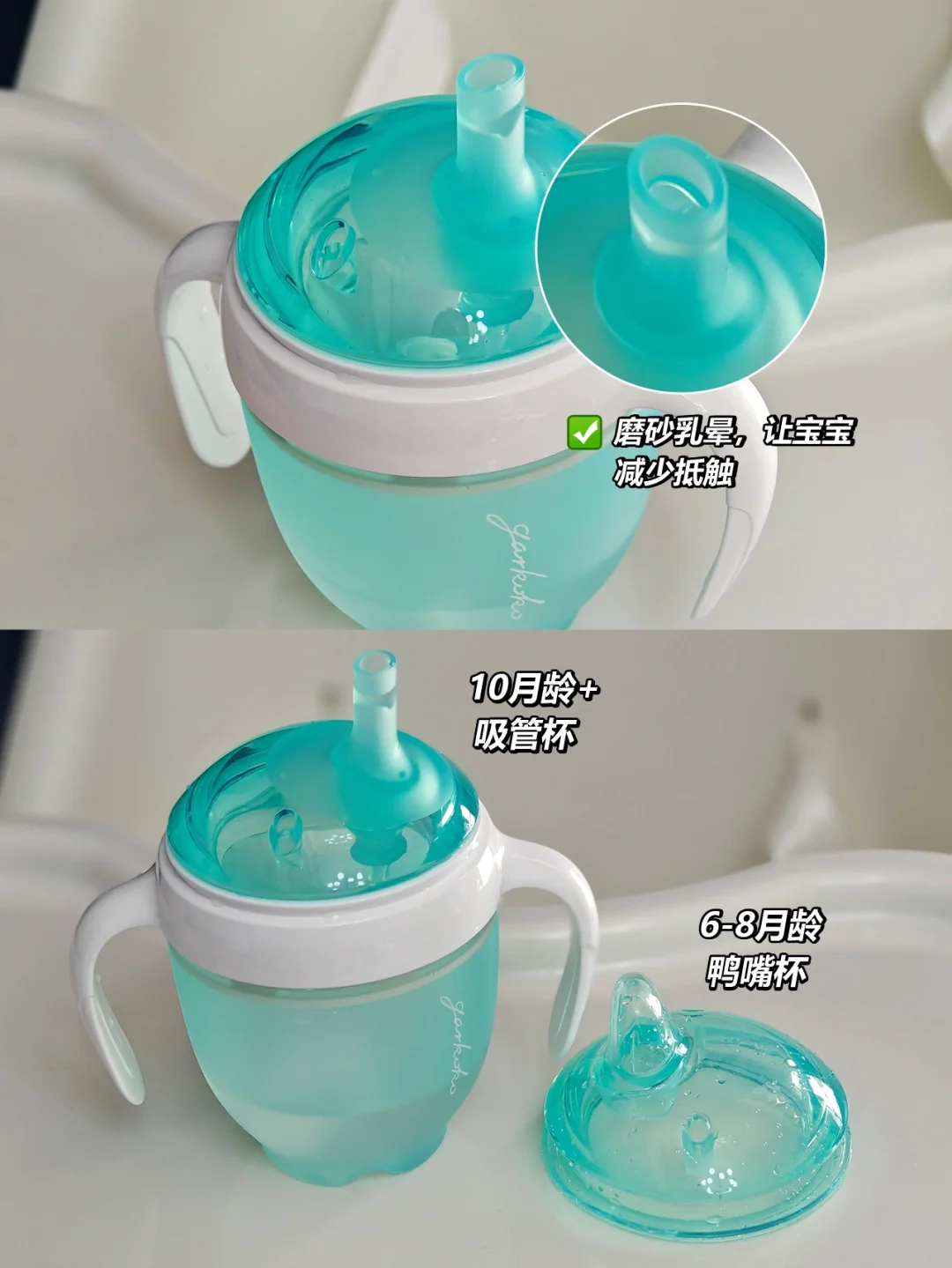 在直接大人一样的宽口碑之前,可以加个斜口杯,斜口杯可以看清水位,防呛咳
