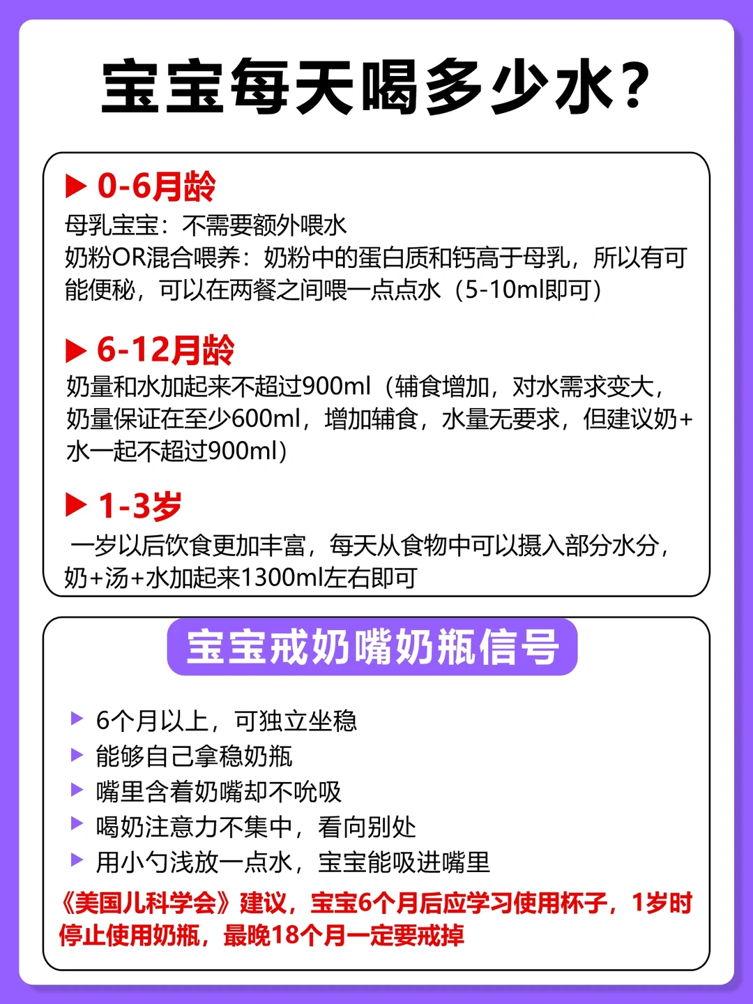 6-12月龄,虽然添加辅食,依然以奶为主,每天保证600ML的奶量,加上水不超过900ML就好