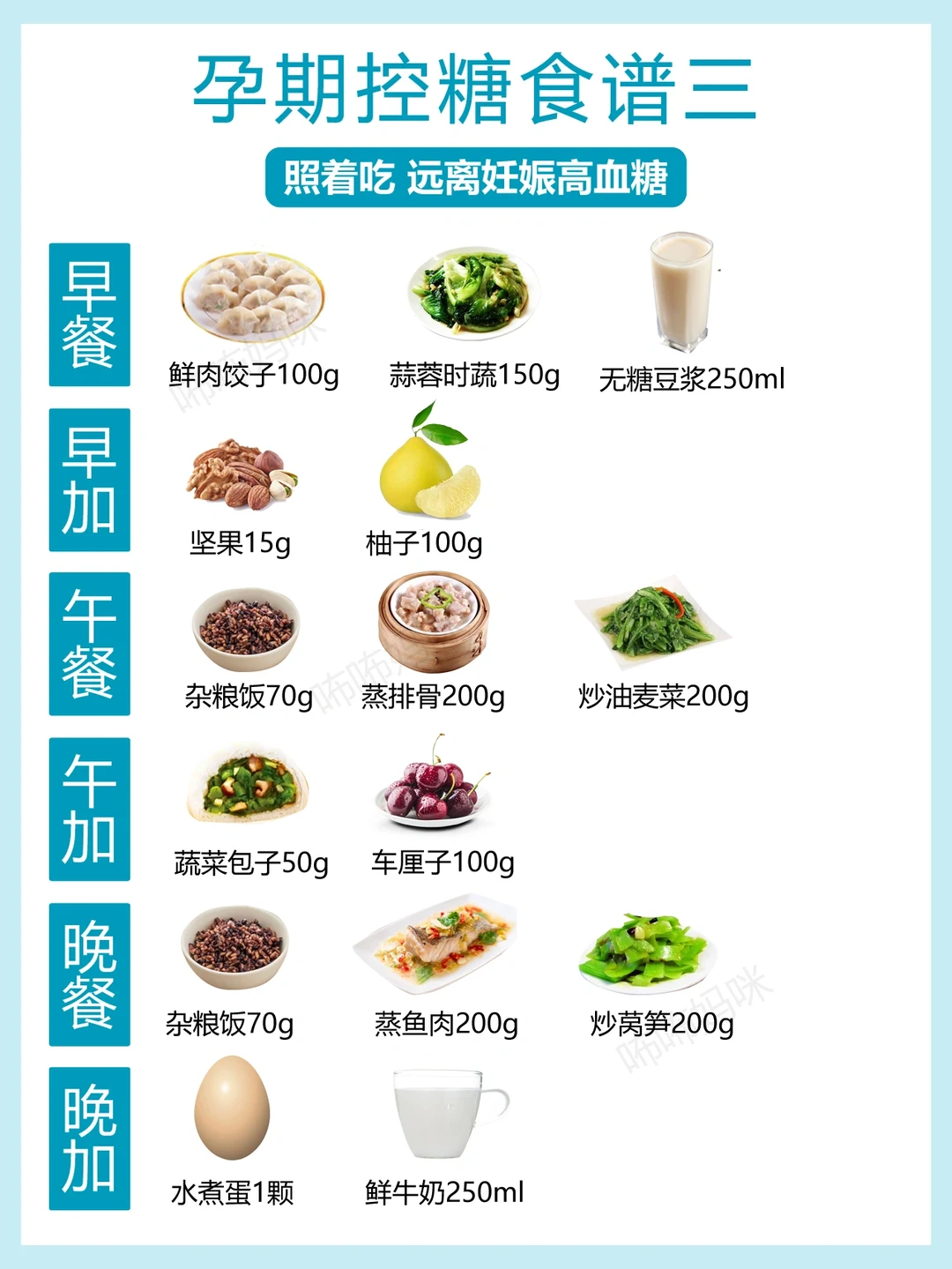 这份孕期控糖食谱是我花了好大百到我们妇幼营养科开的,然后经过我在实践后常吃的菜,有如下特点:食材组合,既控糖,好买又好做,关键是钙铁锌碘DHA这些营养都在这份食谱里!