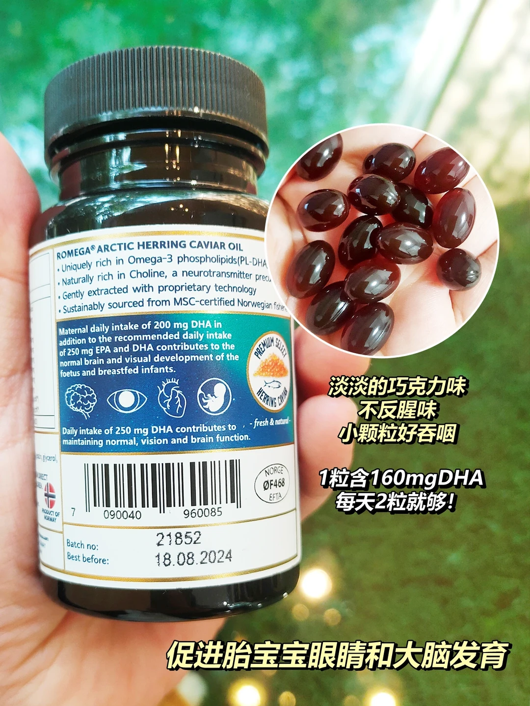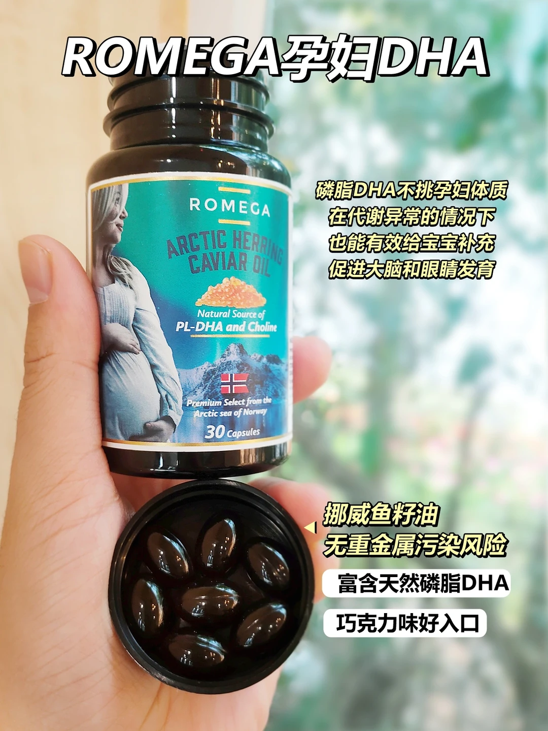 我做了很多功课才知道,代谢异常的孕妈补充普通的鱼油藻油是无法代谢吸收的,只有磷脂DHA才能在代谢异常的情况下,有效给宝宝补充到。所以我选择了ROMEGA孕妇DHA,这款DHA是鱼籽油,富含天然磷脂DHA,不挑孕妈体质,只需简单转化就能到达宝宝,促进大脑和眼睛发育。而且不需要肝脏代谢,补充营养轻松无负担