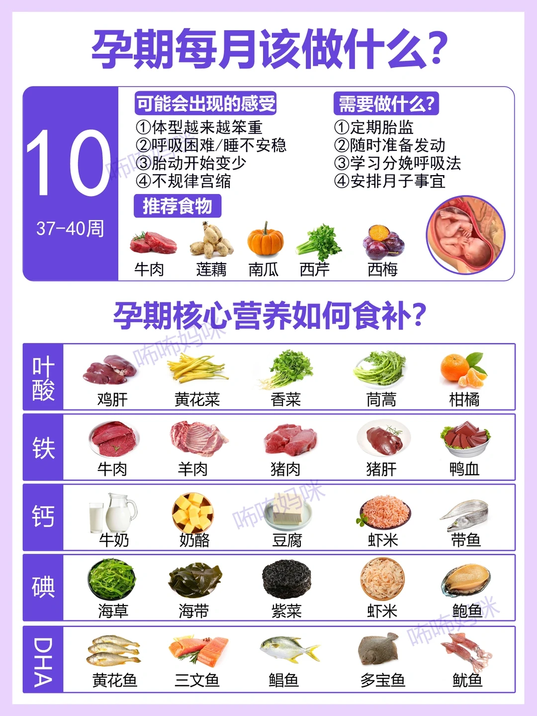 ▶孕1-10月每周要做的事请看P1-4,孕期重点营养对应食物也在P4.