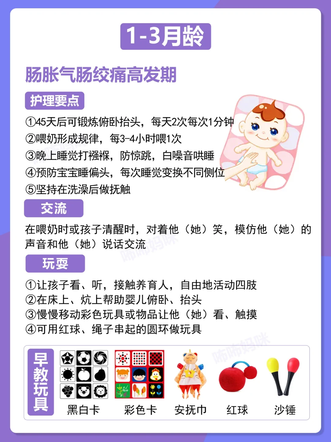 0-1岁宝宝宝宝发育进程+护理要点+早教训练看这篇!