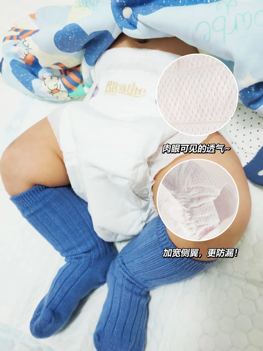首先,它拿在手里,像棉花一样柔软,摩擦感非常小,面层上肉眼可见超多透气孔,不用担心宝宝闷屁屁,同时非常的轻薄,穿起来不会影响宝宝活动