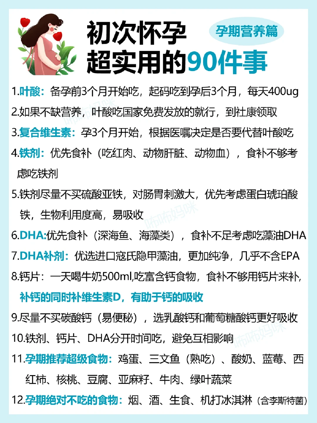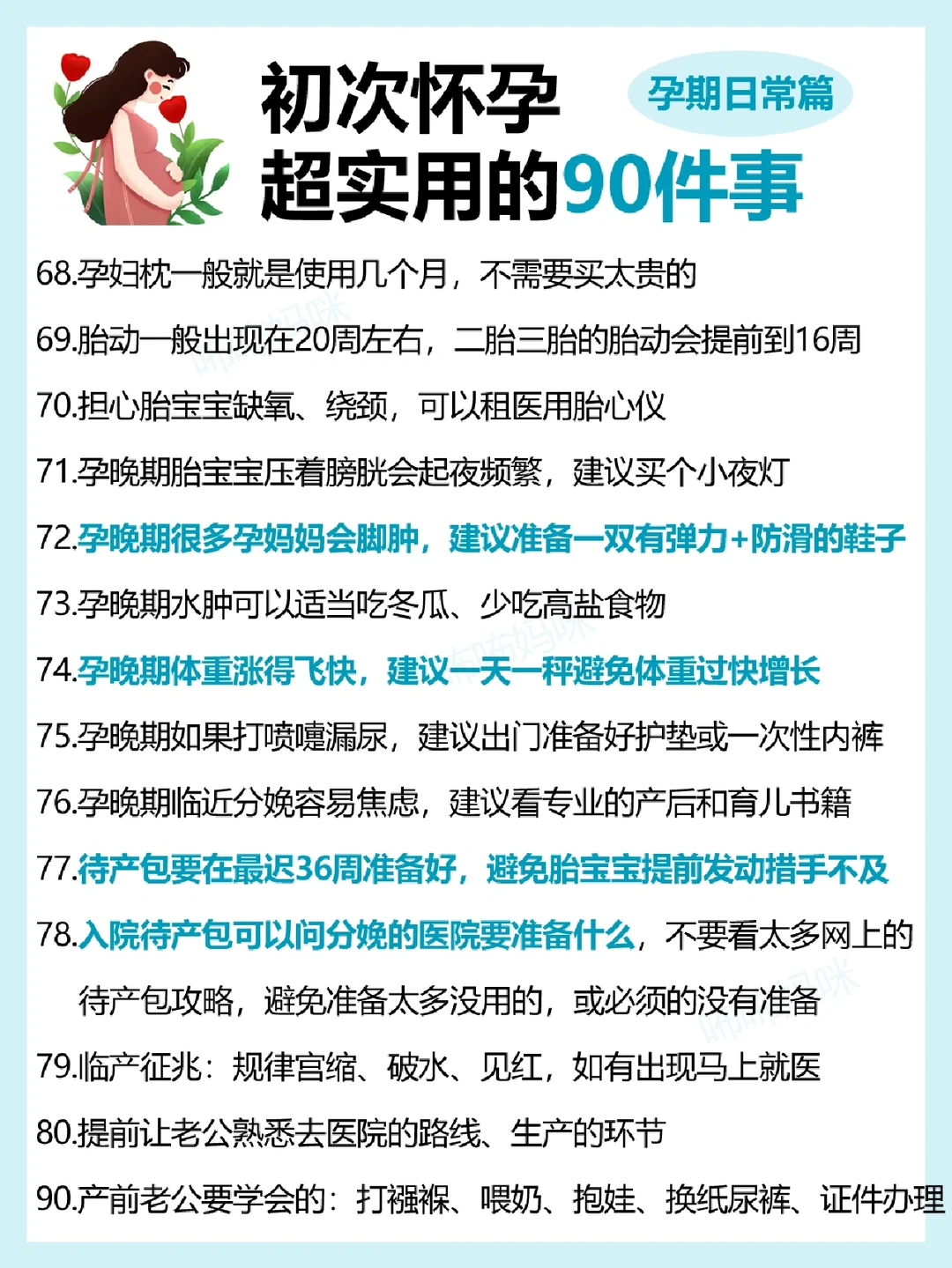 所以今天这篇孕期注意事项我共总结了90个建议~