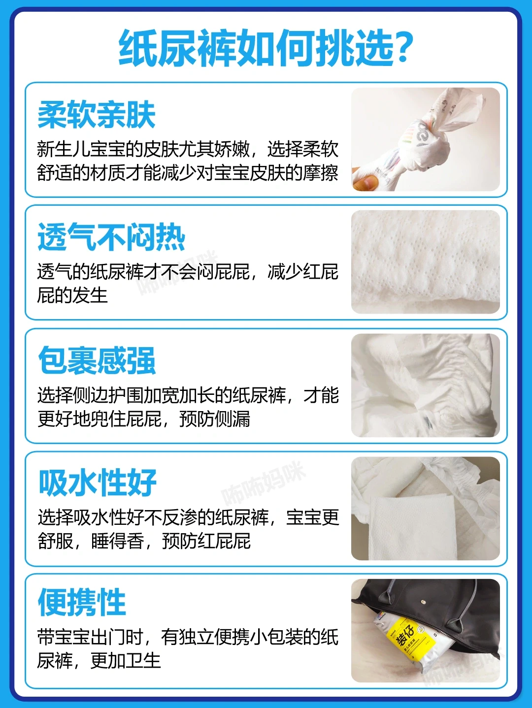 另外纸尿裤也要选对才行,要重点看这几个方面: