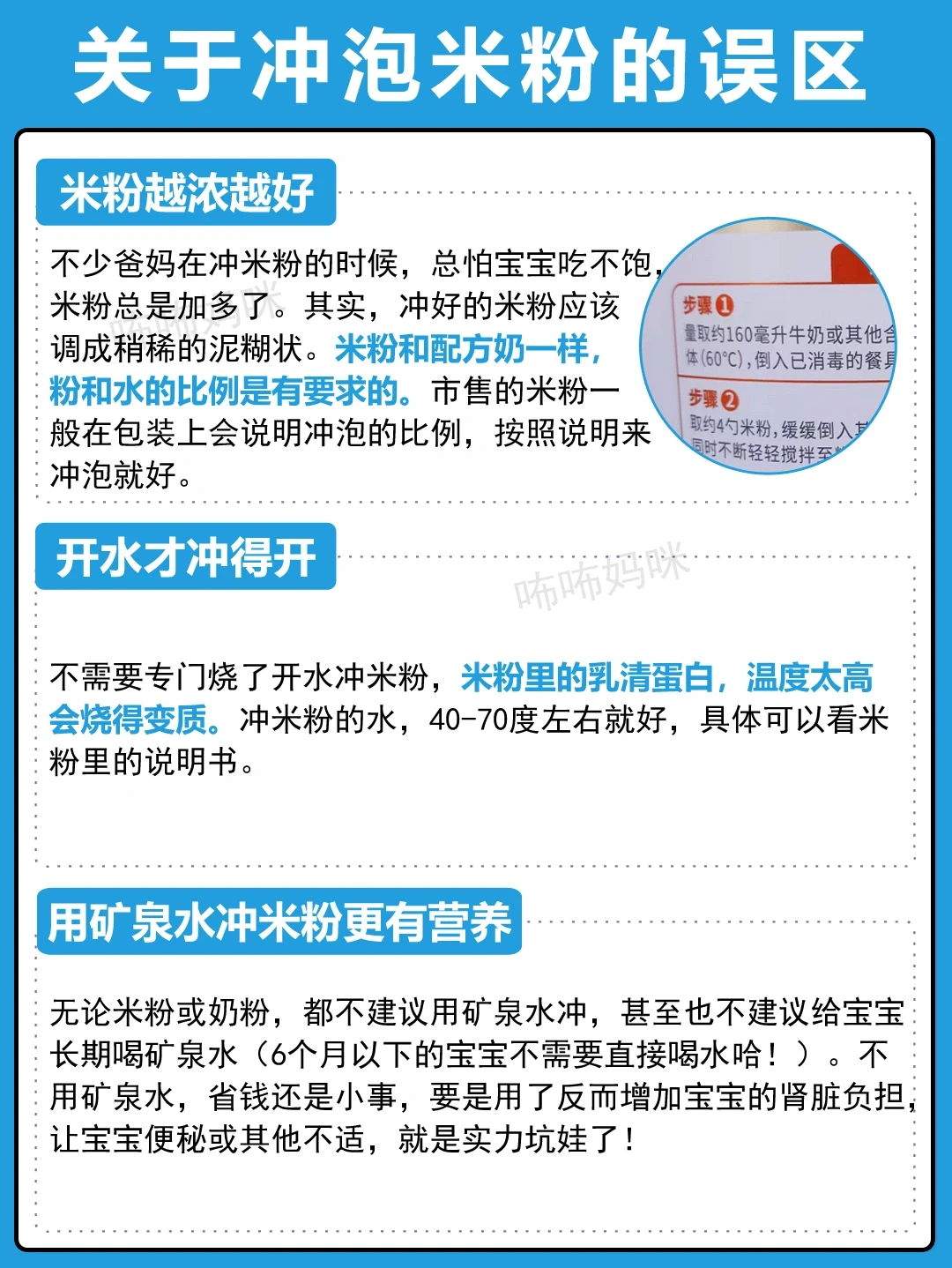 1.米粉越浓越好 2.开水才冲得开 3.用矿泉水冲米粉更有营养