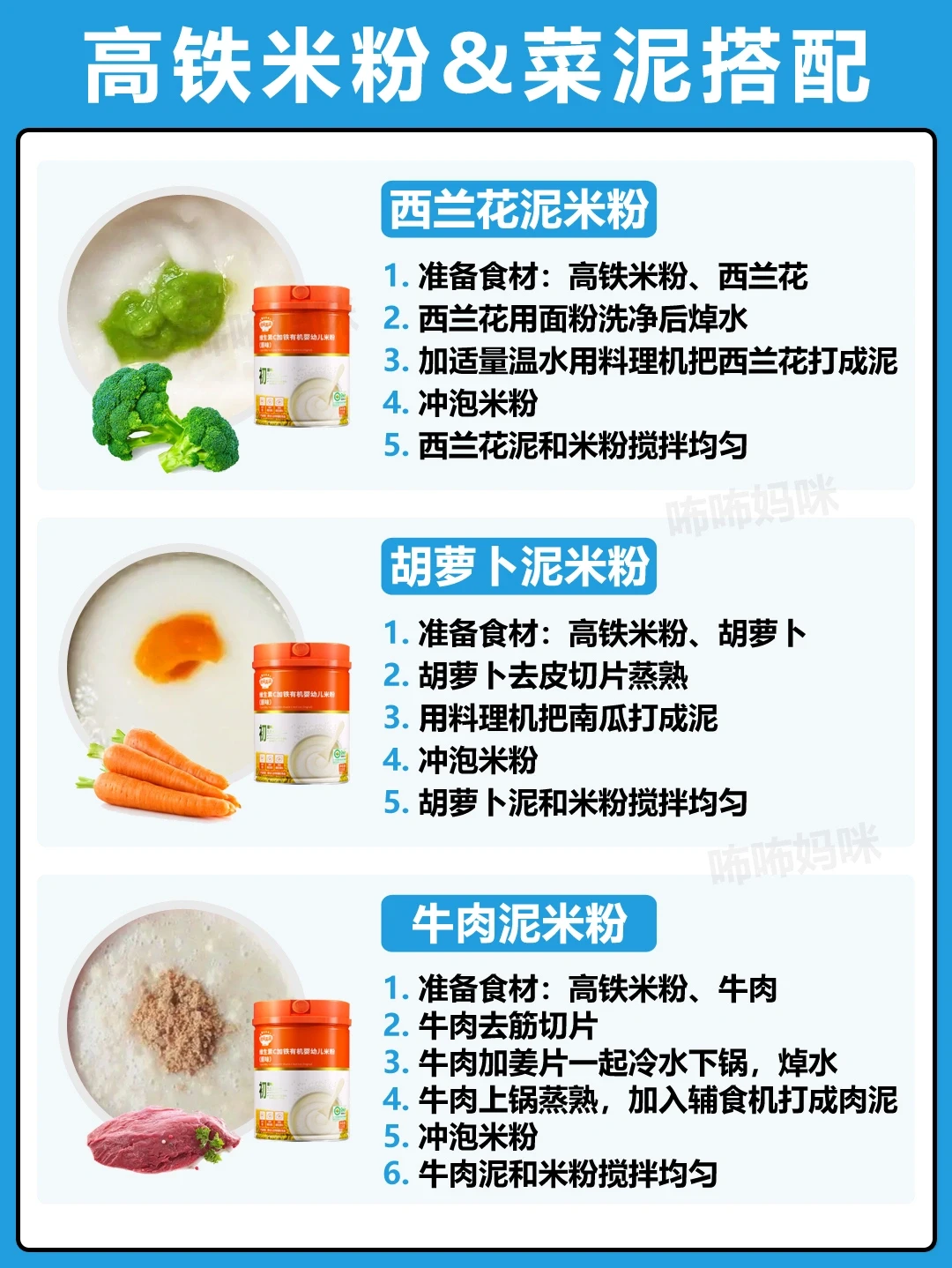 婴幼儿本身就是缺乏铁的高发年龄段,铁元素的补充对宝宝来说很重要。如果奶量正常,1天再加2顿米粉就能满足宝宝每天铁需求。