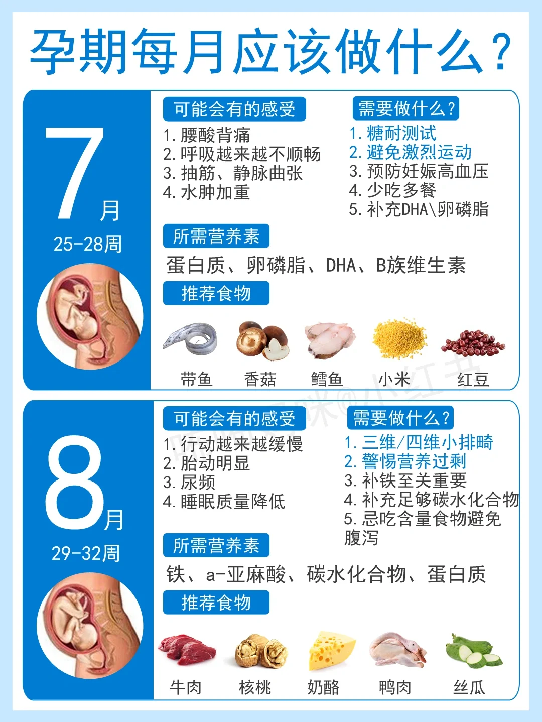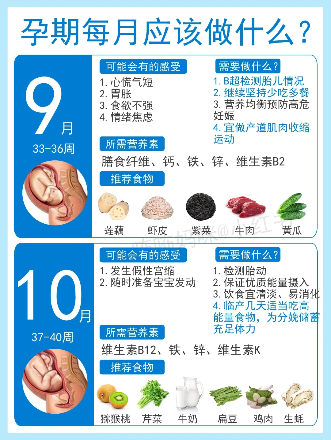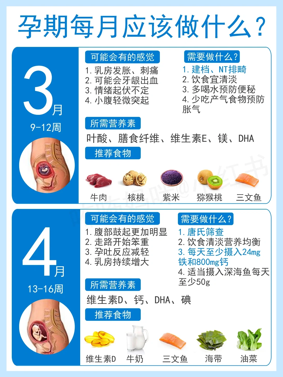 今天奉上孕期每个月应该做的事,该补充的食物,愿的孕妈妈和胎宝宝都健健康康。