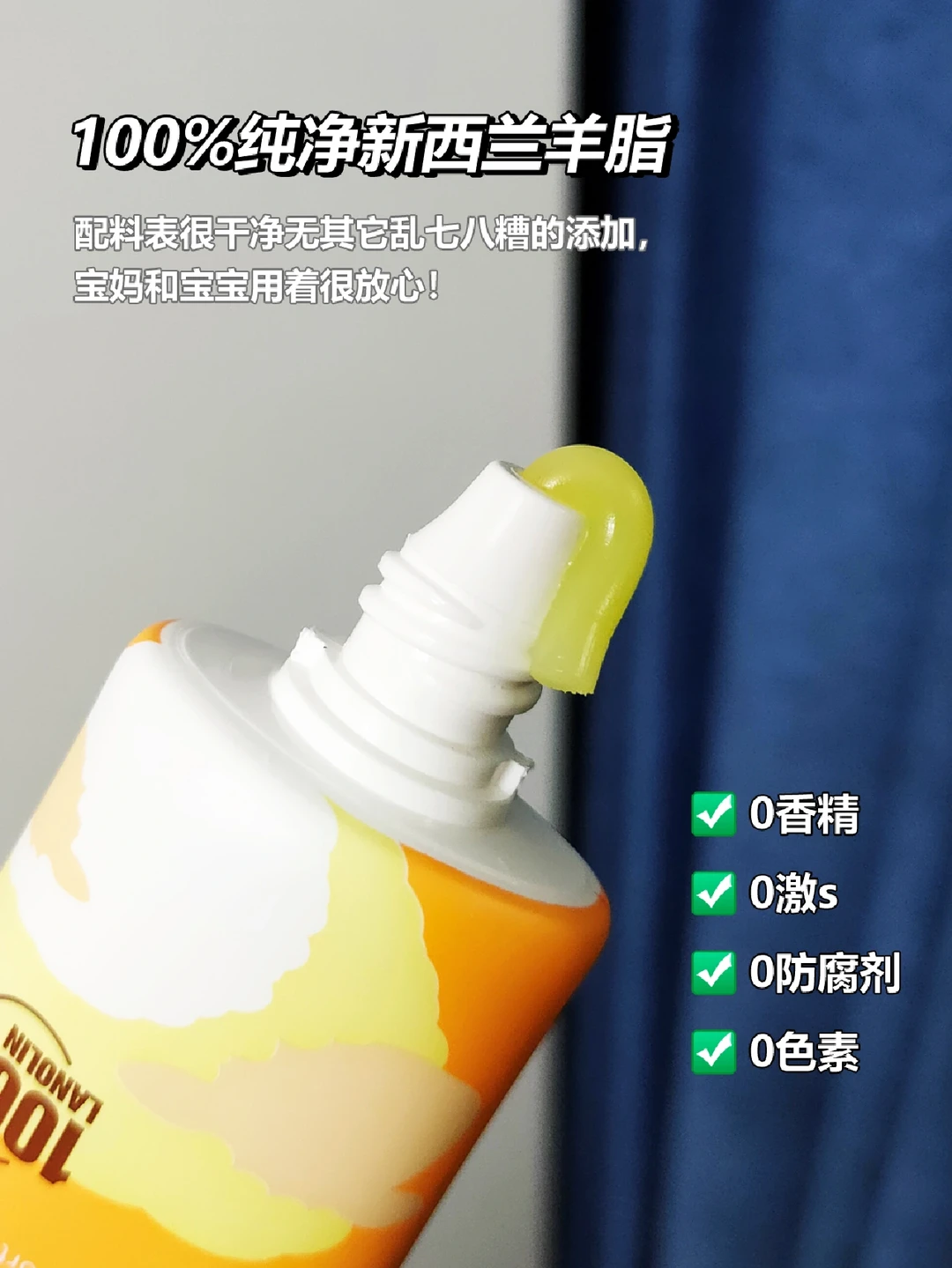 后来在闺蜜的种草下入手了 纽乐葆羊脂膏,特意查了成分,是来自新西兰的天然羊脂,0香精、0激s、0防腐剂,保湿修护力很强,在哺乳前无需擦拭,没有味道,亲喂前宝宝不抗拒,这点让我非常放心!