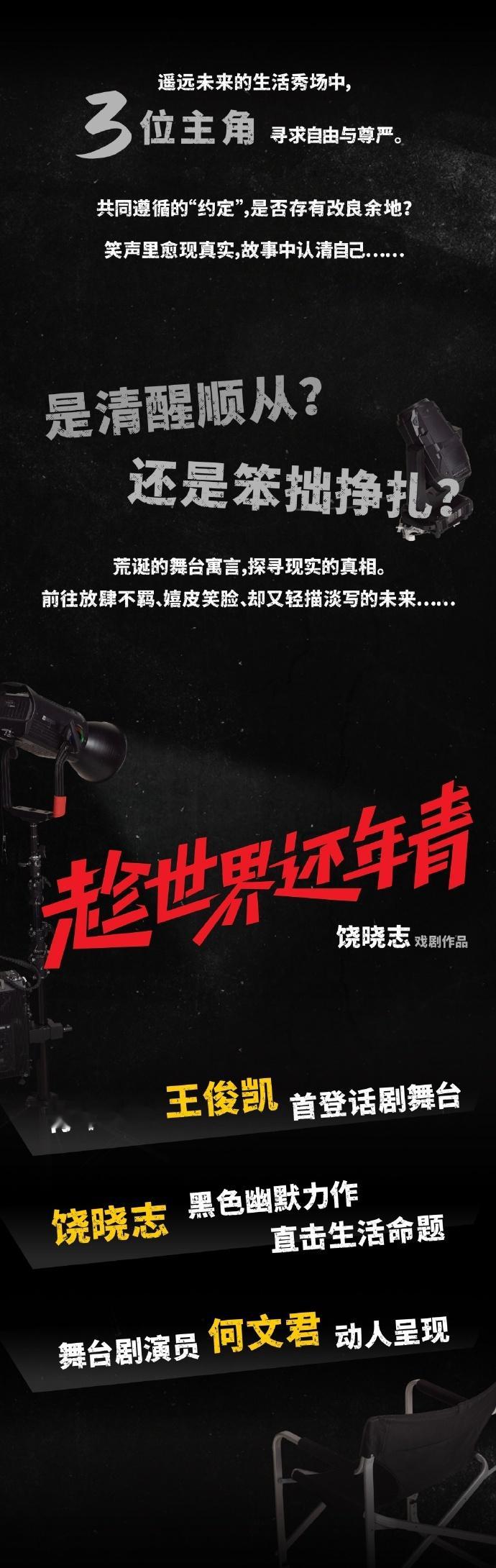 王俊凯主演话剧《趁世界还年青》官宣定档了,12.9-12.14连续六天,可以期待