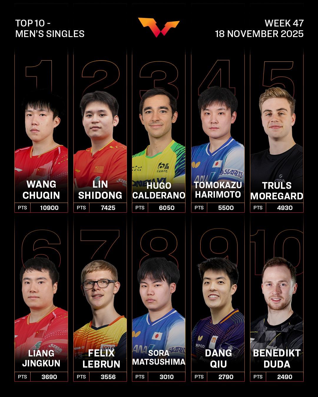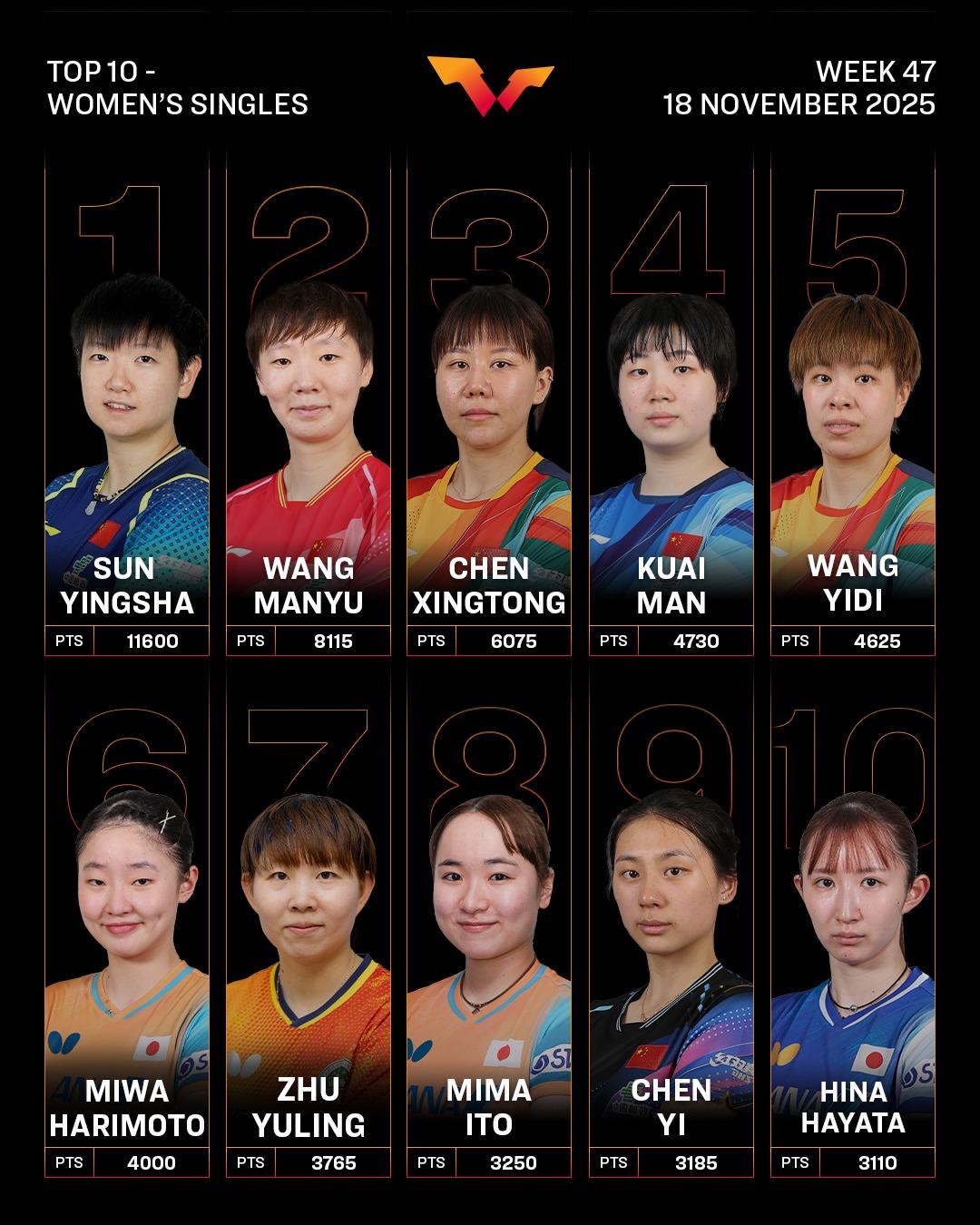WTTins报道。本周的国际乒联世界排名已公布你最喜欢的乒乓球明星中谁将在2025赛季结束时登顶?⬆#乒乓球