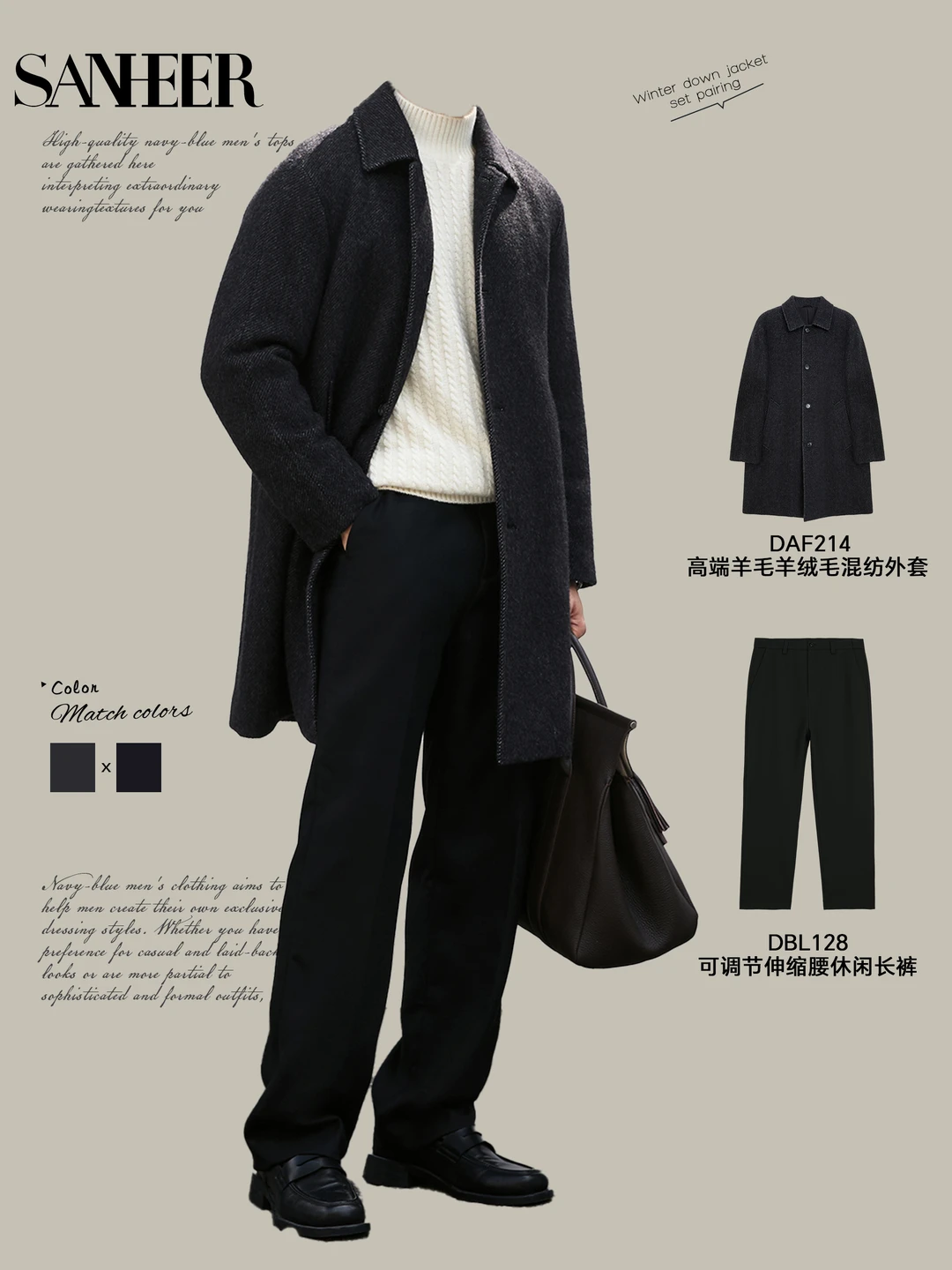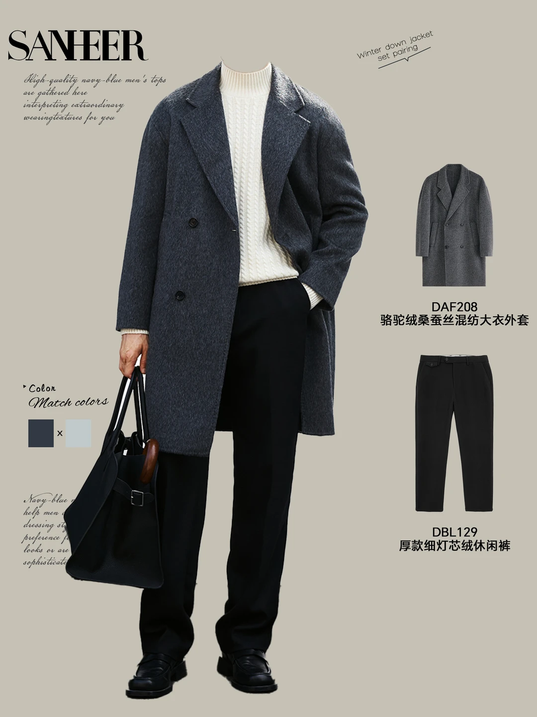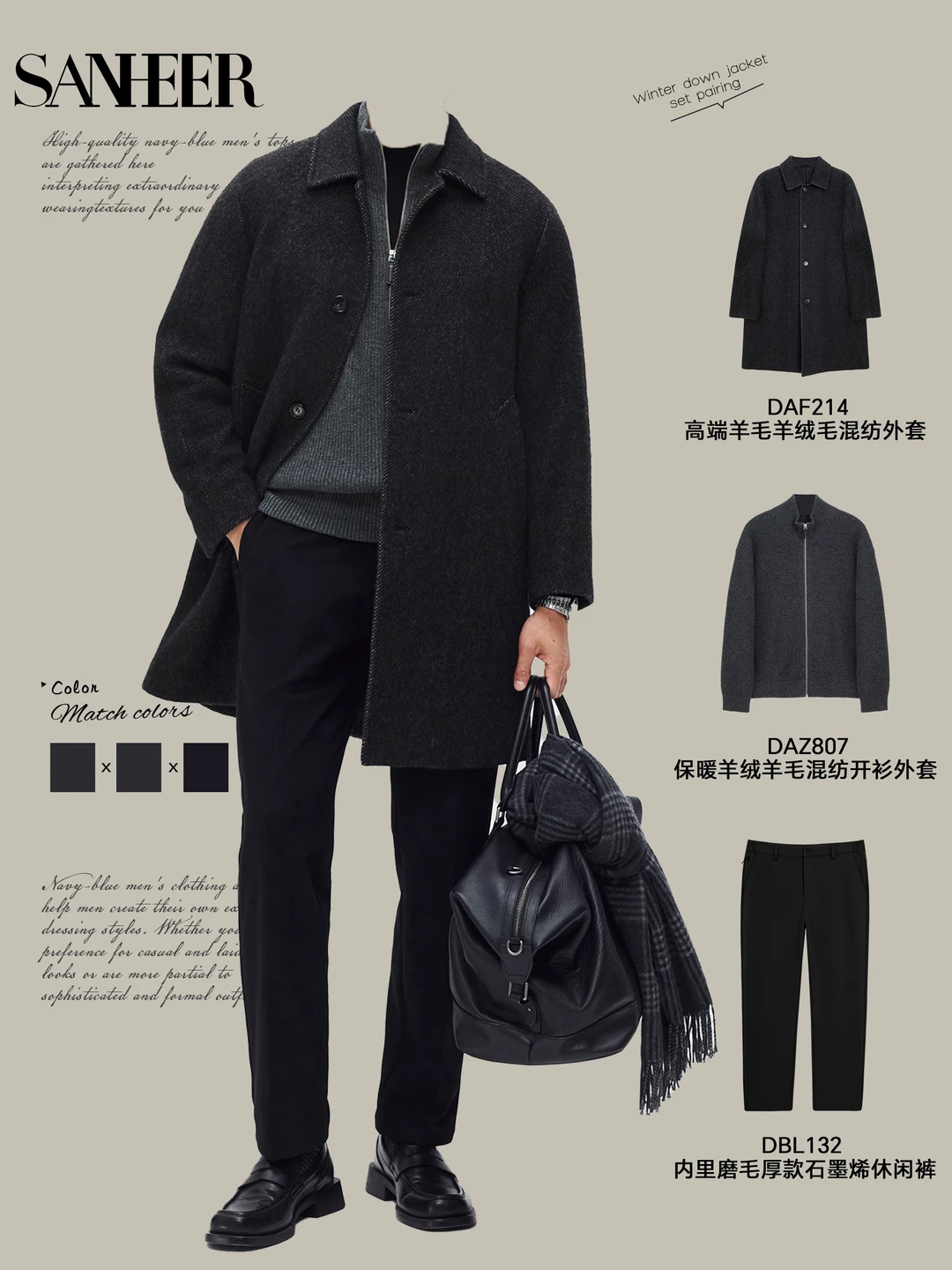 驼色大衣 + 高领毛衣 + 西裤 + 切尔西靴黑色大衣 + 衬衫 + 针织马甲 + 休闲皮鞋