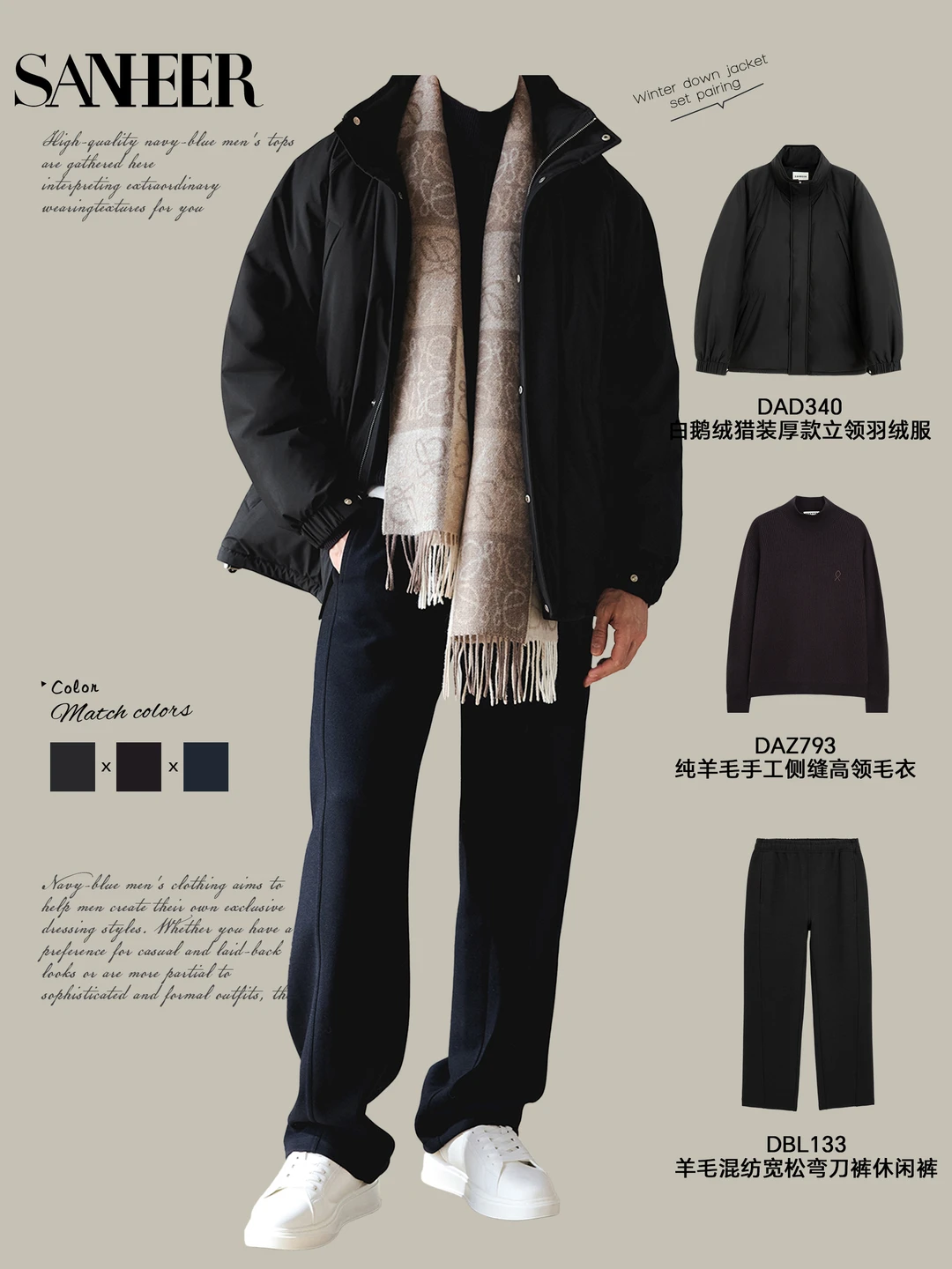 短款羽绒服 + 高领打底 + 直筒牛仔裤 + 小白鞋中长款羽绒服 + 连帽卫衣 + 束脚运动裤 + 老爹鞋