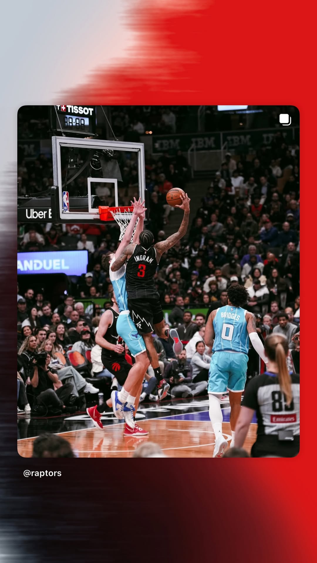 猛龙官方更新社媒,晒出英格拉姆隔扣卡尔克布伦纳的瞬间