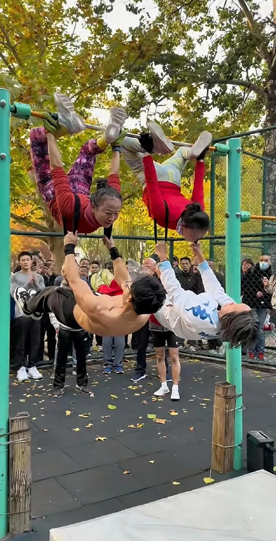 这种健身的老人,身体素质扛扛的,坐公交车,肯定不会要求年轻人让座。 盘单扛这么有劲,都是日积月累练习出来的。