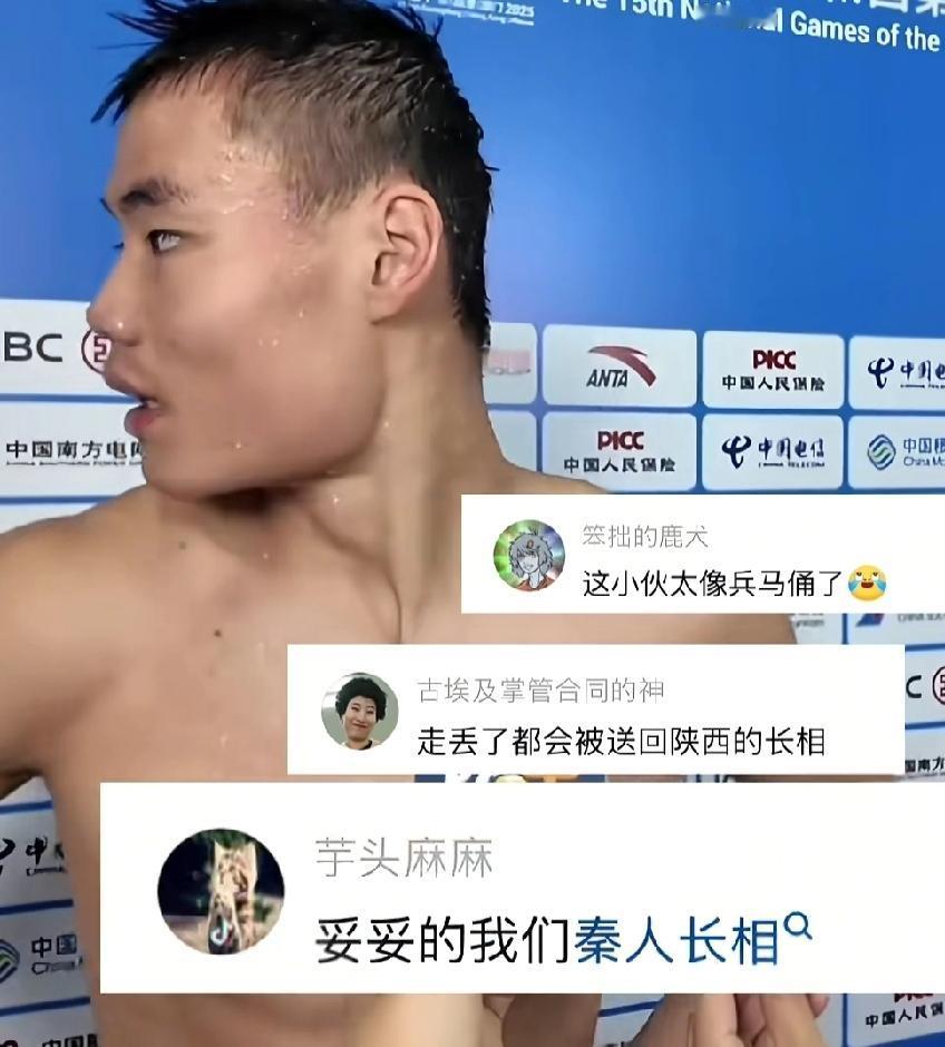 渭南小伙十五运1500米自由泳获得铜牌,撞脸兵马俑,这不妥妥的“秦人长相”吗? 就连眼睛都一样,曾经在拉萨看到一个男的像兵马俑,一问果然是西安人。从咬肌看,他能咥三个肉夹馍,两碗面皮,还得来碗胡辣汤溜溜缝 别跳水了,立马给脸上泥,练跪姿,开直播。老秦人太能了,刚刷完文车车,这面相,这体格子,怎么都得是个百夫长。有好几个渭南同学,都像是从佣坑走出来的,说明渭南人的汉族基因很纯