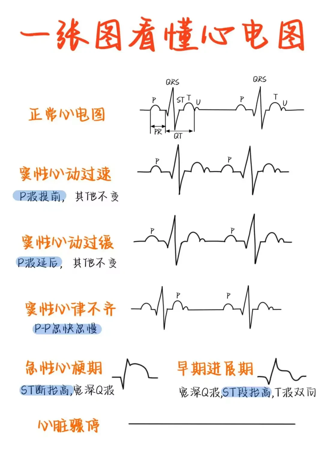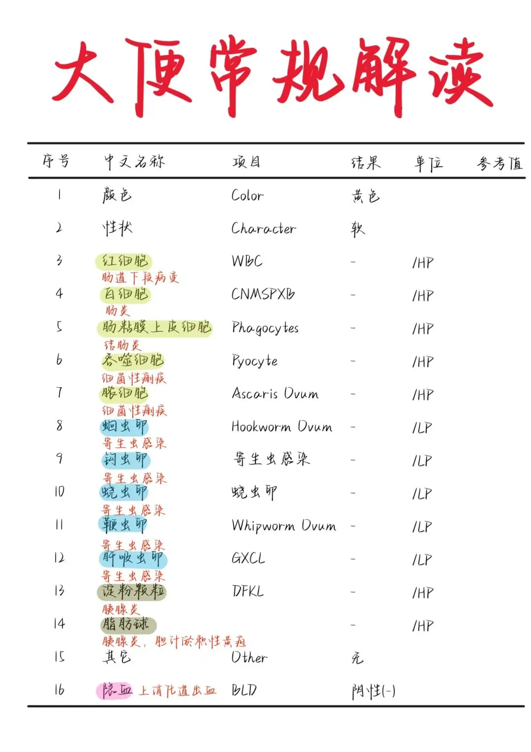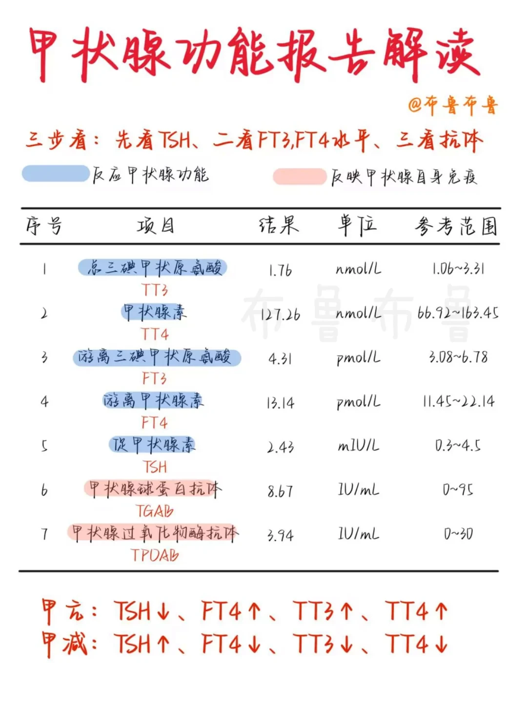 《医学生笔记——报告解读大合集》 🙋♂️我是blue,主业学医,副业画画 🎨用图画形式学习医学知识——今天学习“报告解读大合集” ✌️跟着我,每天无痛学习知识点 🌈我们终将上岸,阳光万里 _ 本篇内容仅供医学学习交流,不做任何医疗行为建议,若有治疗需求,请前往正规🏥就诊