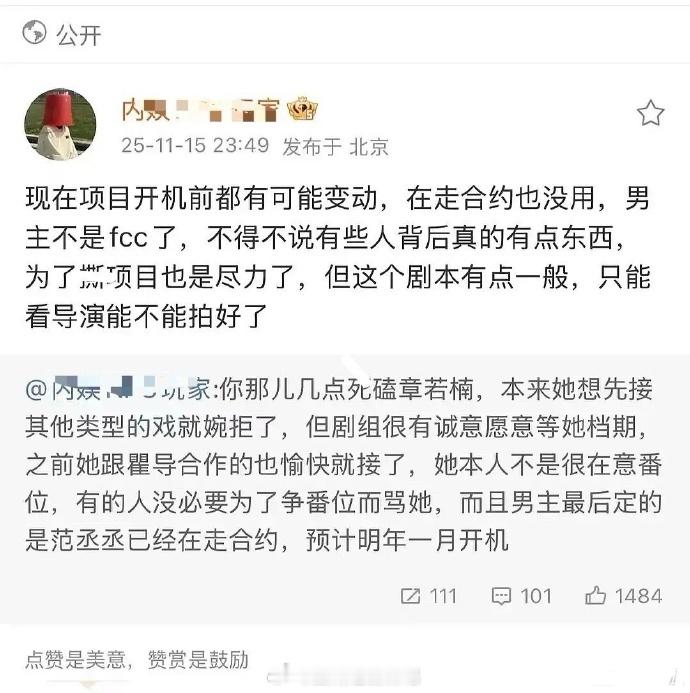 瓜主爆料《你那儿几点》死磕章若楠,不管男主最后定谁,女主都在前。现在不管什么戏粉丝都只要绝对一番~男主最开始传的范丞丞,都说已经在走合约了,后面不知道是有更好的选择,还是被截胡了?现在男主开始遛王安宇了,说实话,这部剧要想码到好的卡司,只能平番。