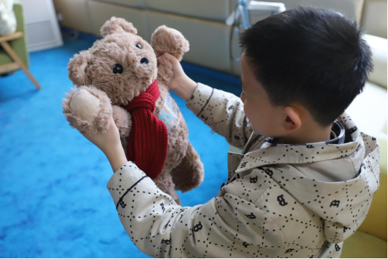 在杭州师范大学附属丁兰实验学校的心理辅导室里,三年级学生乐乐(化名)抱着一只毛绒小熊轻声倾诉。