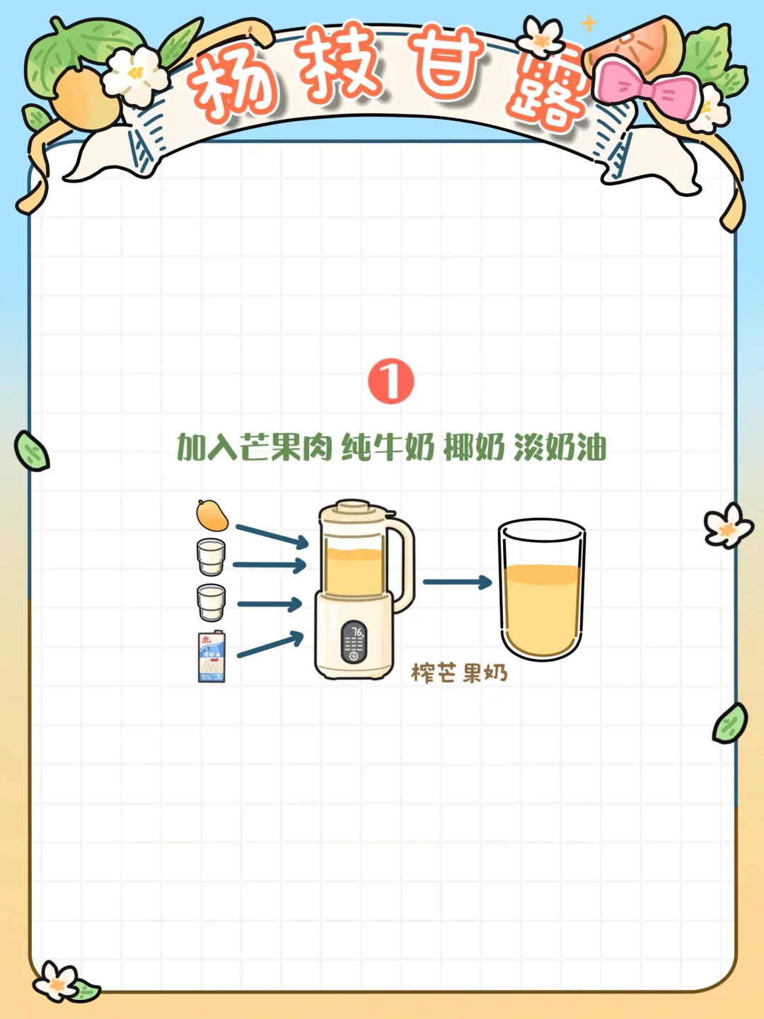 1️⃣芒果果肉🥭和椰奶 纯牛奶 淡奶油一起榨成芒果奶