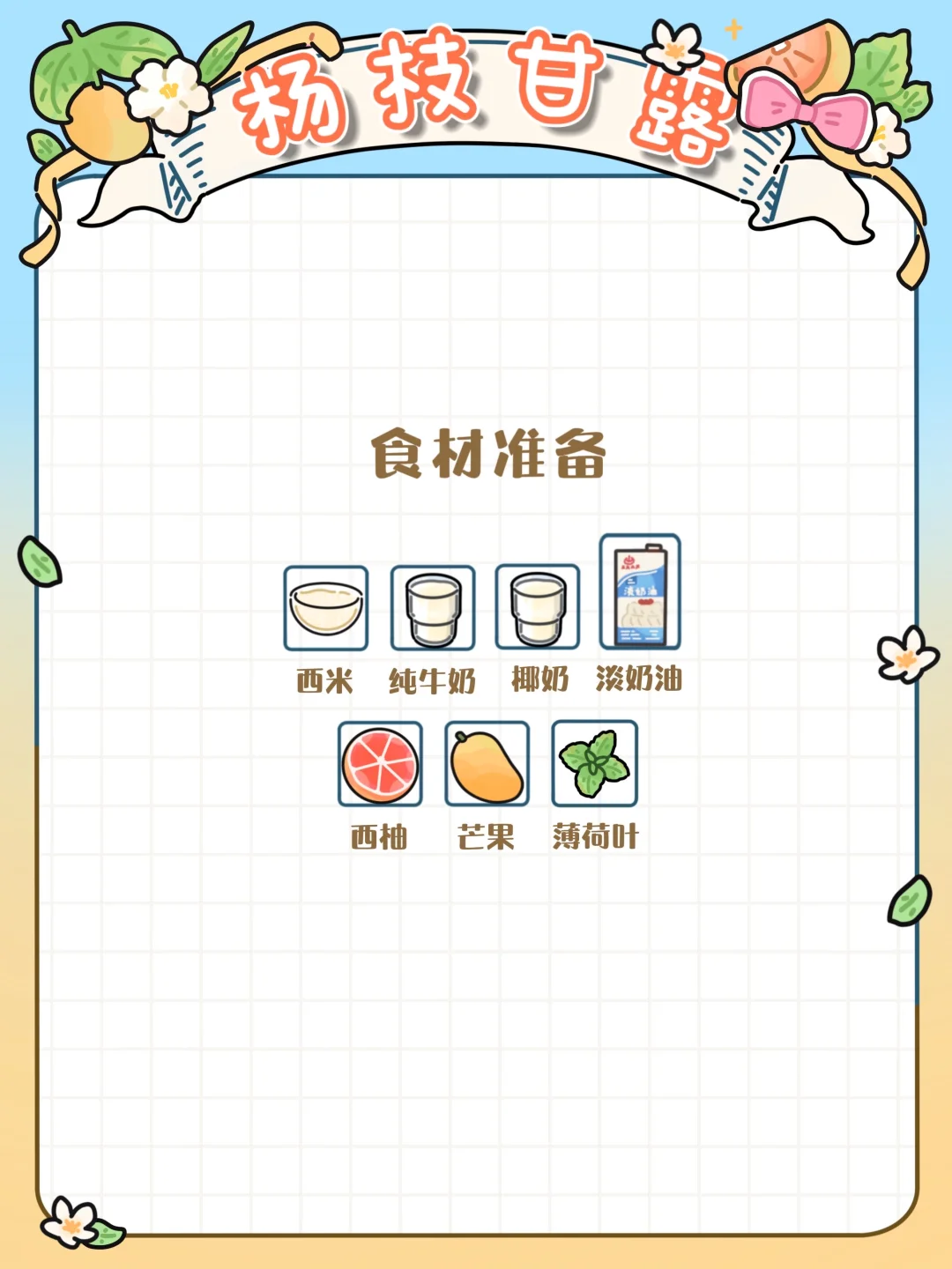 西米|纯牛奶🥛|椰奶🥥|淡奶油|西柚|芒果🥭|薄荷叶🍃