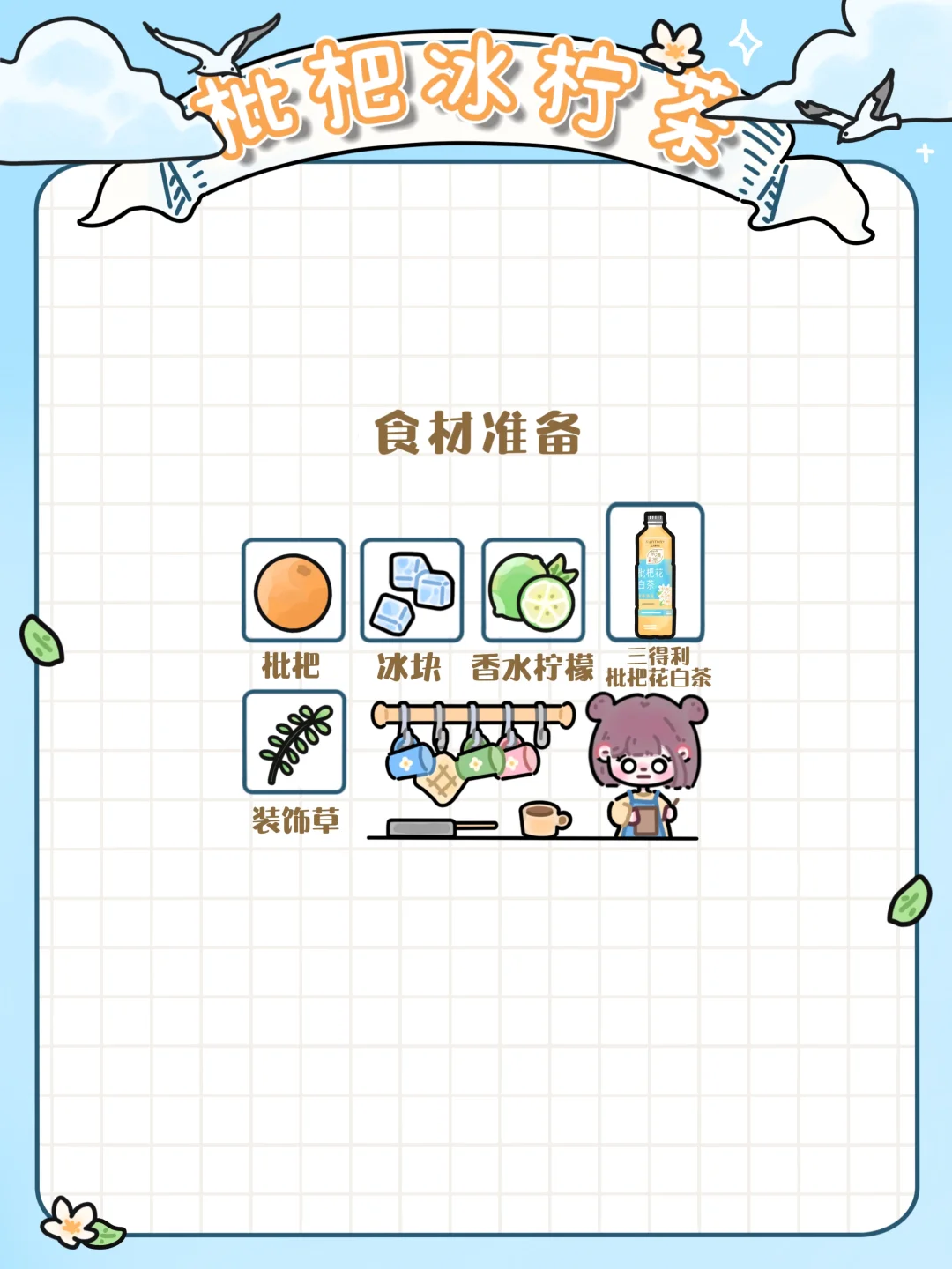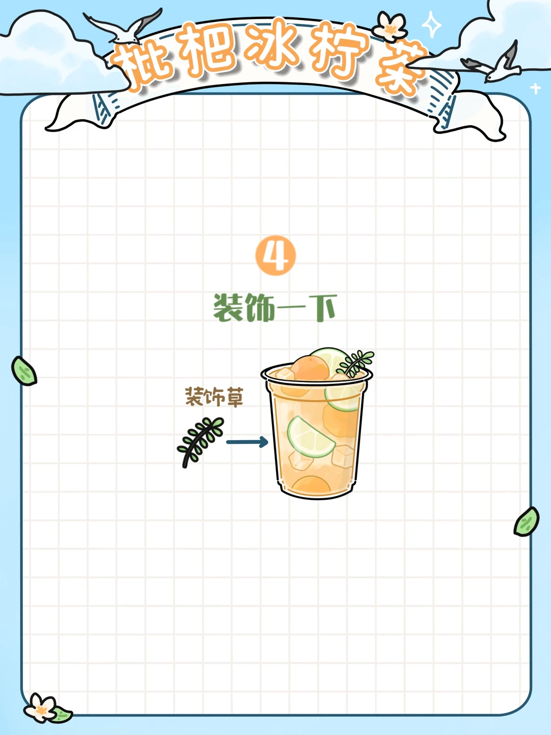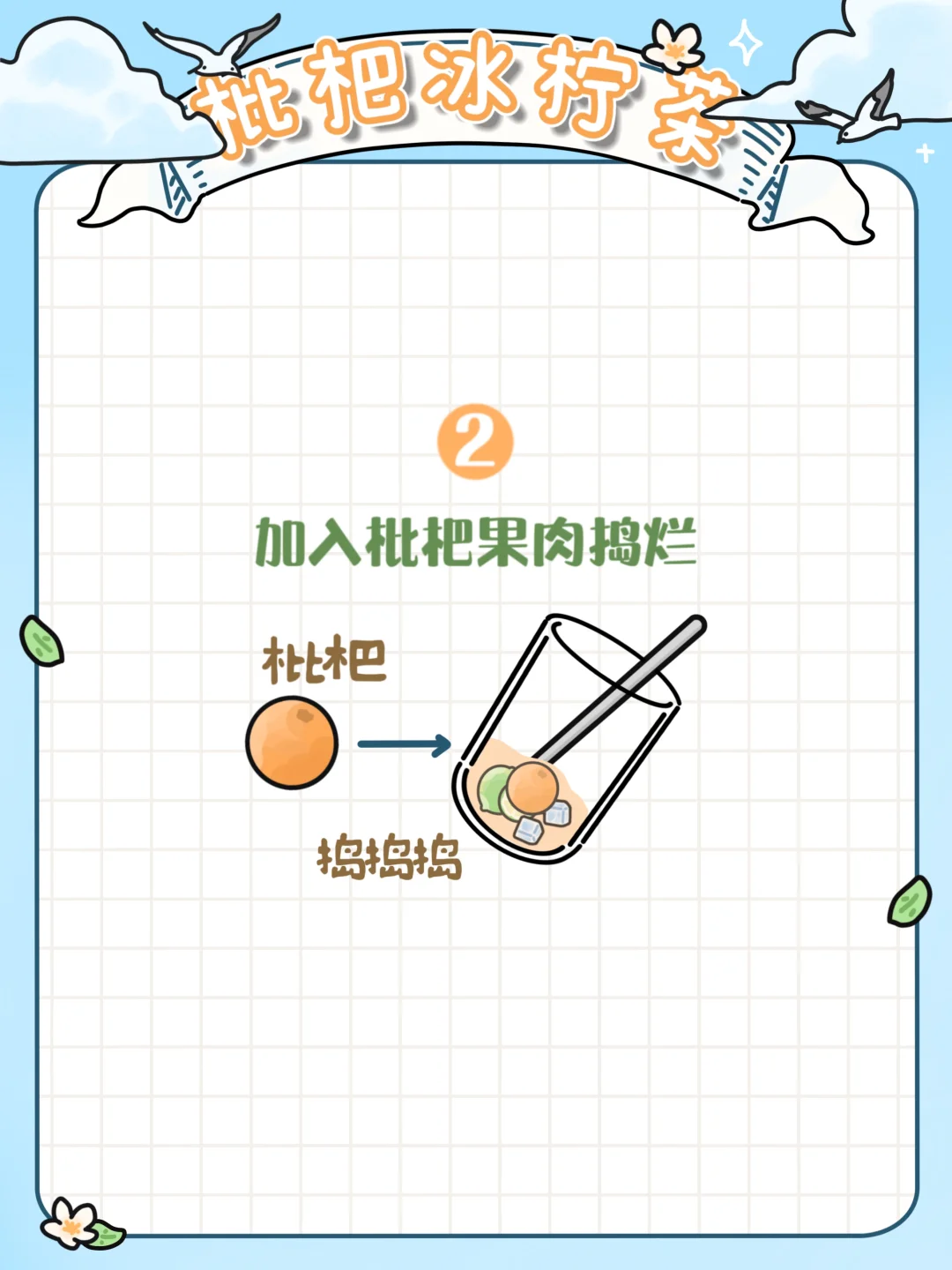 4️⃣放点枇杷和叶子点缀(拍照📷出片可以装饰一下哦~)