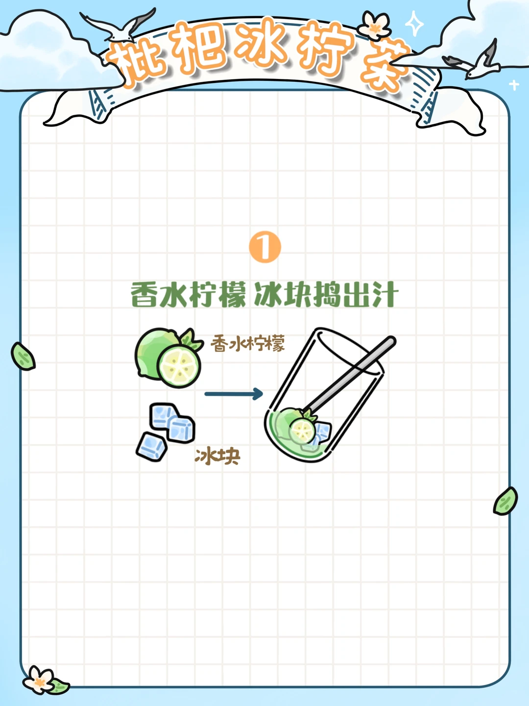 1️⃣香水柠檬3片🍋🟩和冰块🧊捣出汁