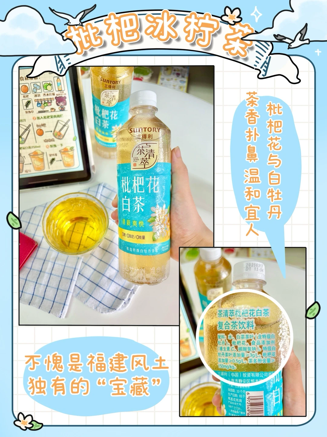 夏日☀️枇杷季到啦~枇杷真是什么都好(就是肉有点薄 核太大了呜呜😭),但我发现了它的花也是很不错的食材!枇杷和枇杷花是两种完全不一样的东西,它对我们的嗓子很有利哦~,那么把它做成夏日限定饮品呢🍹,最近柚子买的三得利枇杷花白茶到了💡刚好可以用它和枇杷做一个枇杷冰柠茶吧👍