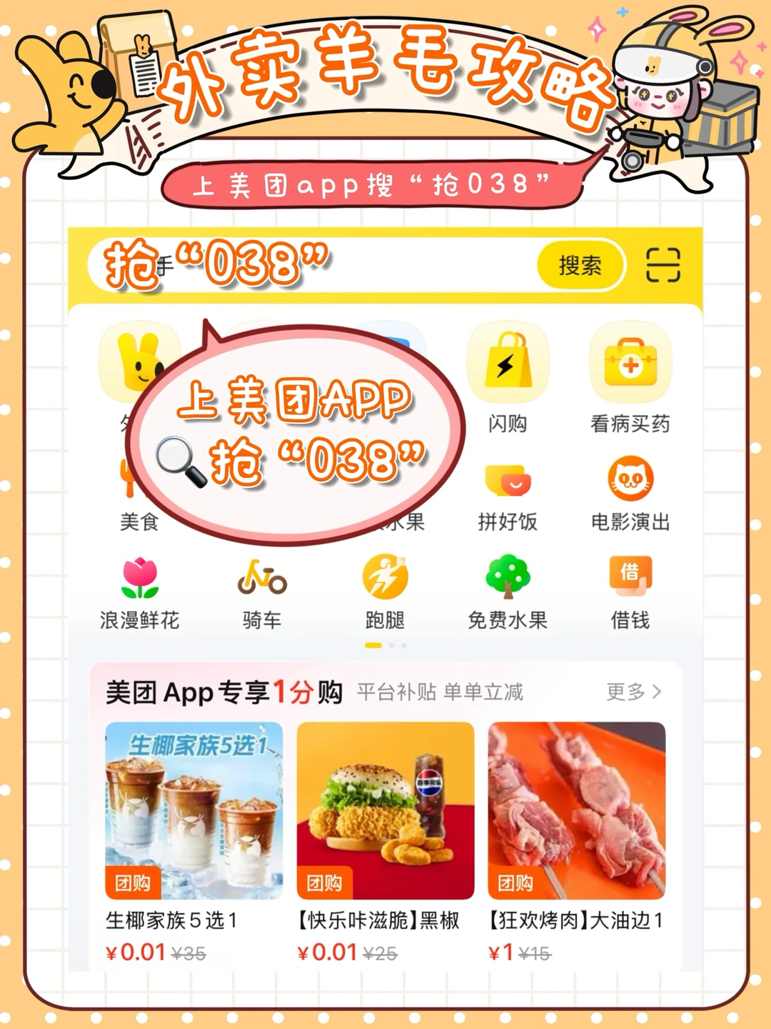 1️⃣.上美团APP搜🔍“抢038”