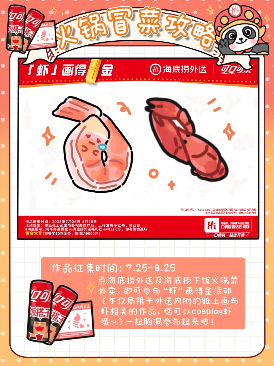 说到虾滑,我只能说咱们捞子真的不仅好吃好喝更好玩👍7.25-8.25参与“虾画得金活动”,在外送包装内附带的纸上画出与虾🦐相关的作品,上传发布小,带话题
