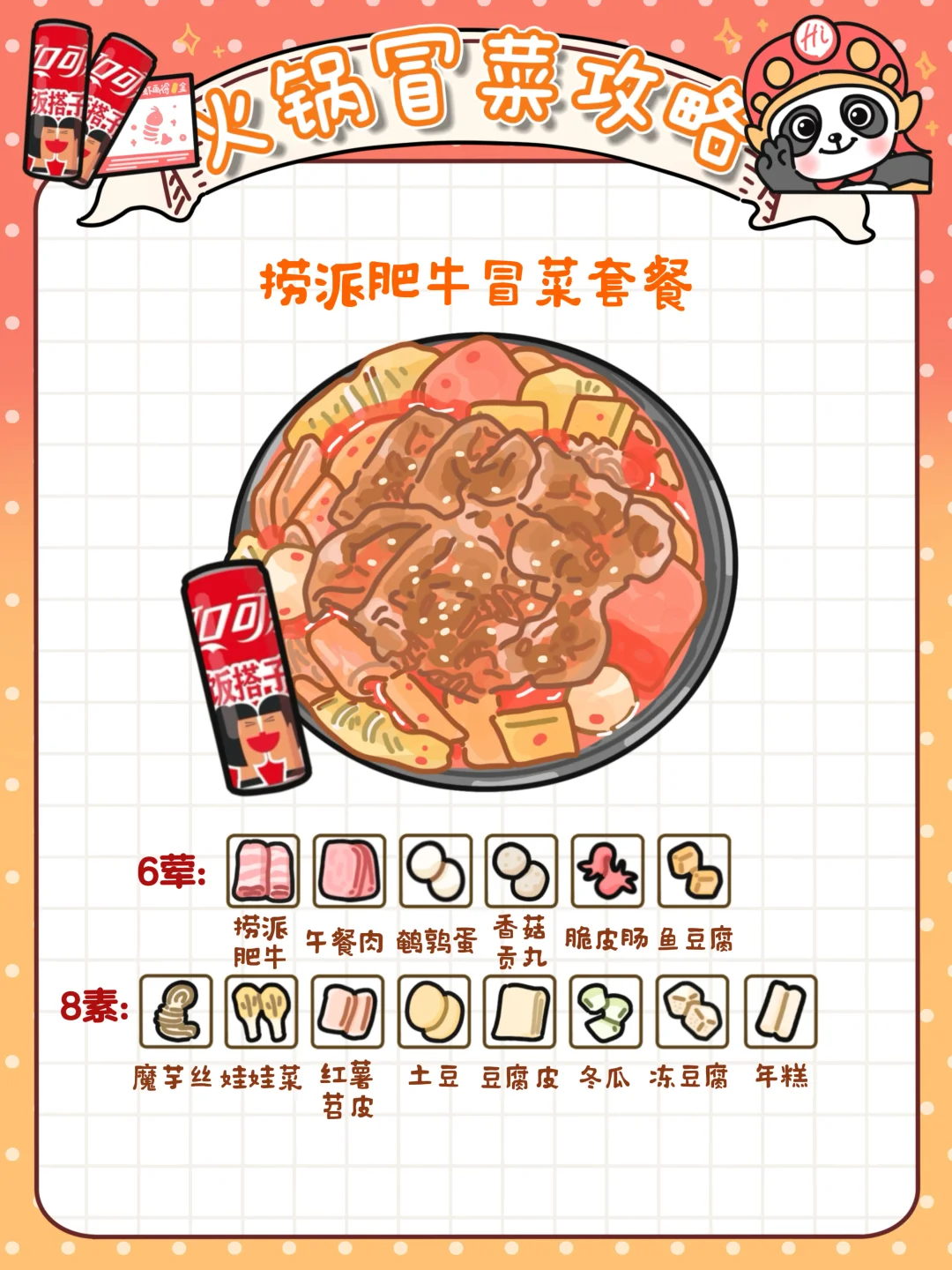 而且作为每次吃火锅🍲啥都想吃一点,但是一大桌吃不完的我来说,海底捞家的冒菜套餐六荤八素!!几乎把所有我爱吃的食材都包括在里面了🤩不输店里的浓浓汤底➕六种荤菜➕八种素菜🌱而且食材都是吃的出的新鲜,品质绝对没话说👍我点的是肥牛冒菜,肥牛吃在嘴里满口肉香🥩太幸福啦!!再来一口可口可乐的冰爽快乐‼️到底谁懂呢🥰我就是世界上最幸福的小女孩👧