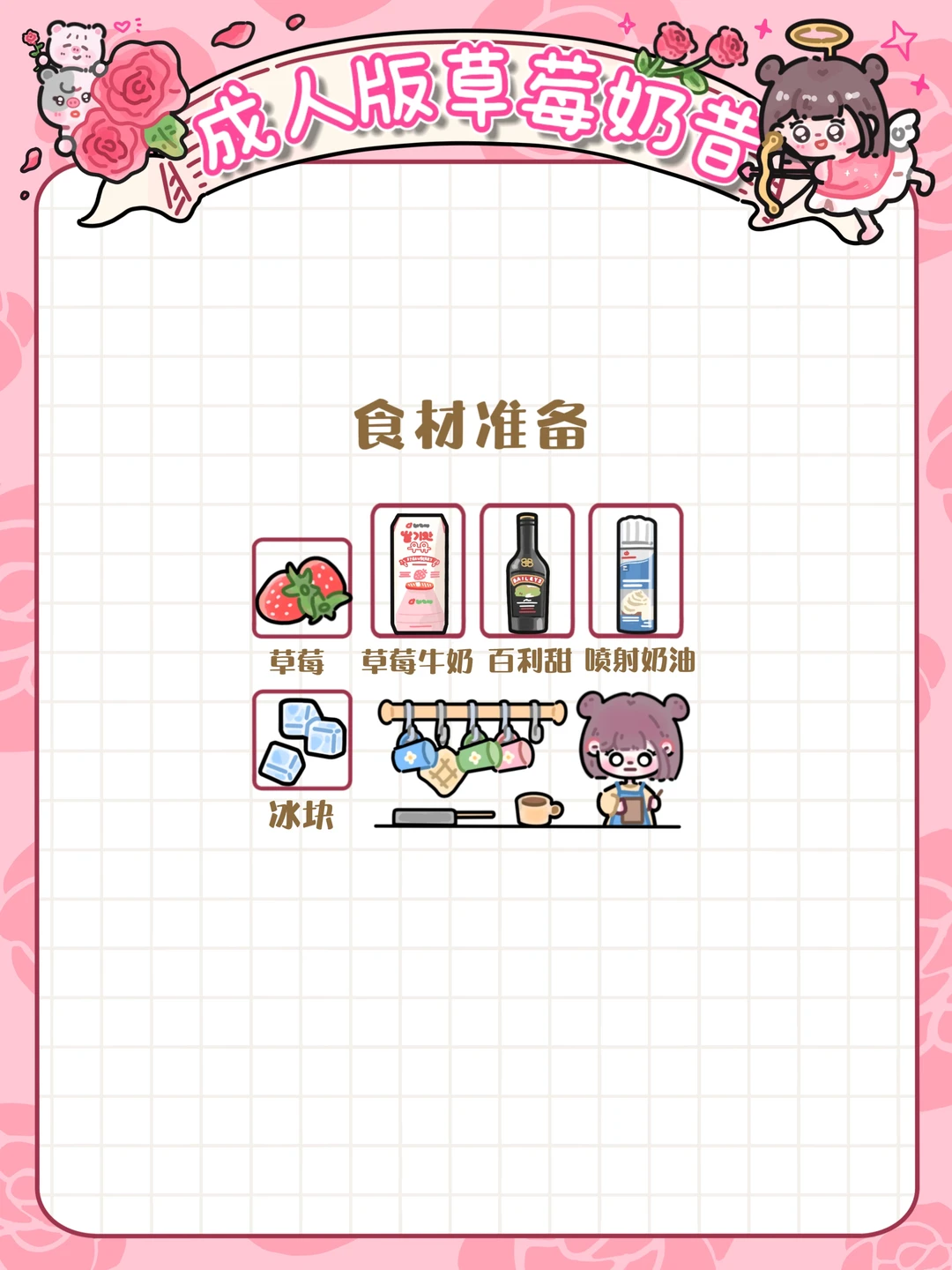 手绘食谱🍓|香甜草莓奶昔🍧享香甜微醺🥴