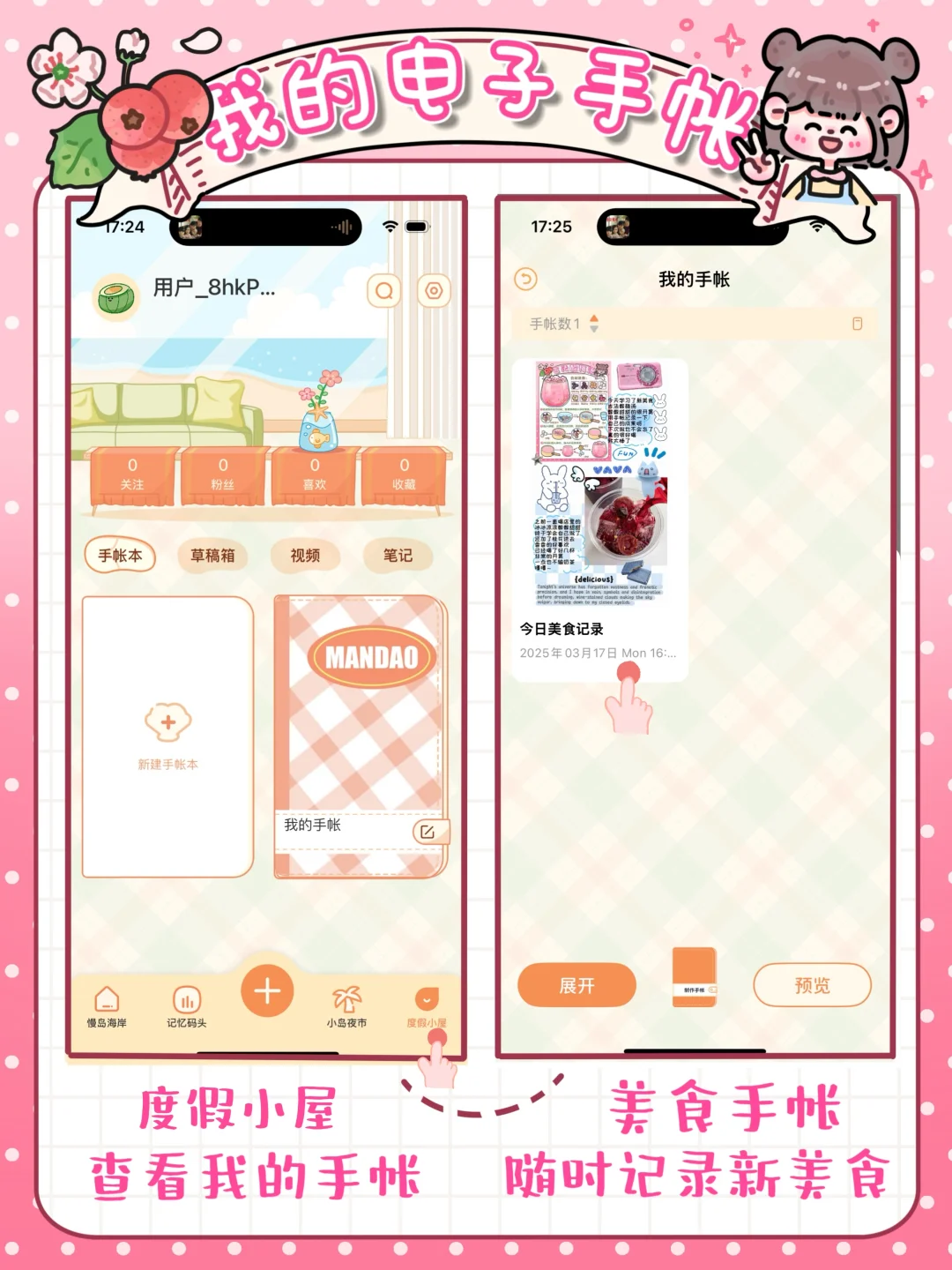 (完成之后可以在度假小屋⛱️查看自己的手帐哦~)