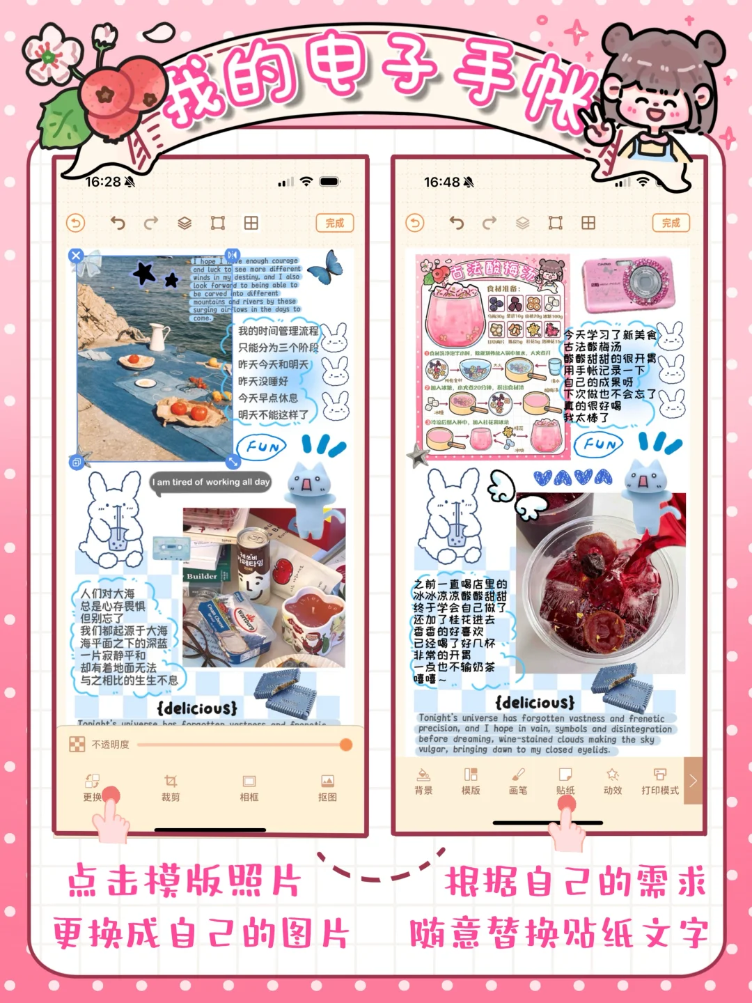 3️⃣有各种手帐模版,选择自己心仪的模版📒