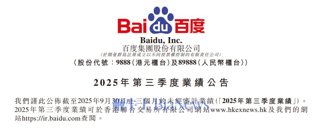 今日,百度集团发布第三季度财报。